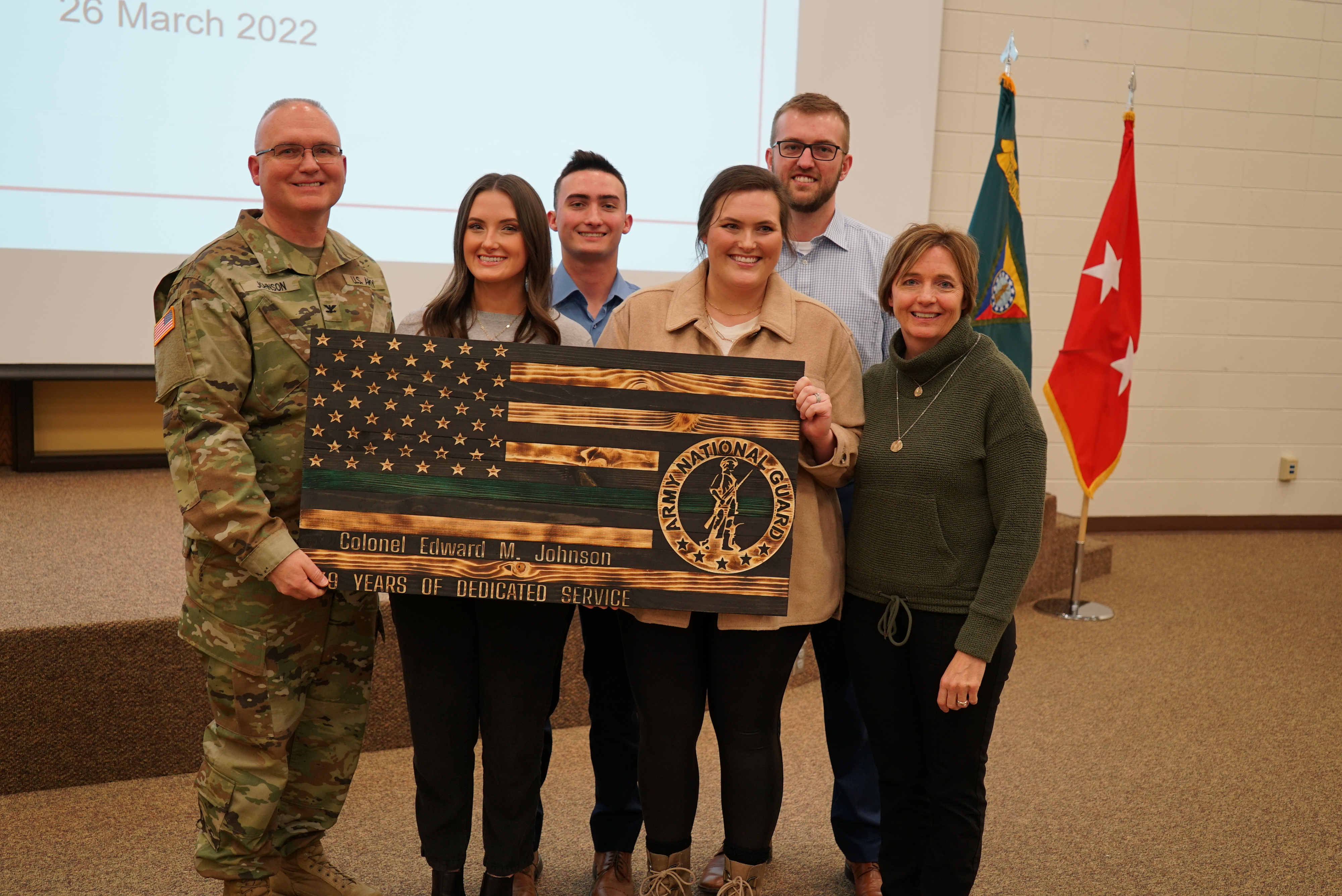 Col. Ed Johnson, commander of Camp Grafton Training Center (CGTC), was honored at a retirement ceremony which recognized nearly four decades of his military service, CGTC, March 26, 2022. (National Guard story and photos by Sgt. 1st Class Charles Highland, N.D. National Guard Public Affairs Office)