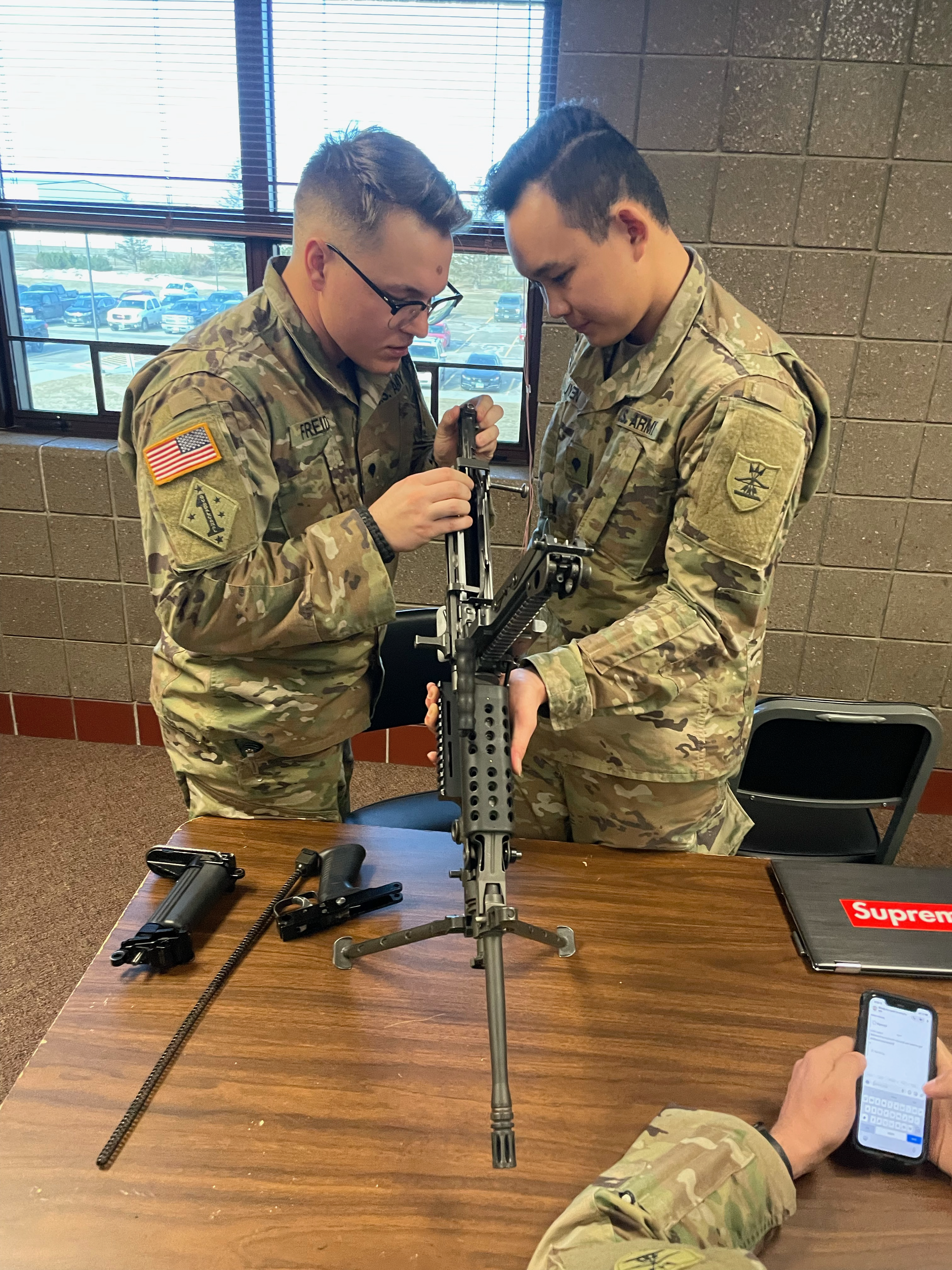 The 818th Engineer Company (SAPPER) conducted weapons training and preliminary marksmanship instruction (PMI) in Minot, March 27, 2022. The classes were conducted to help refresh fire air knowledge and provide new shooting skills. The class focused on the M4 carbine and M249 Squad Automatic Weapon or SAW. (National Guard story and photos by Spc. Justus Joel Freidel, 818th Engineer Company)