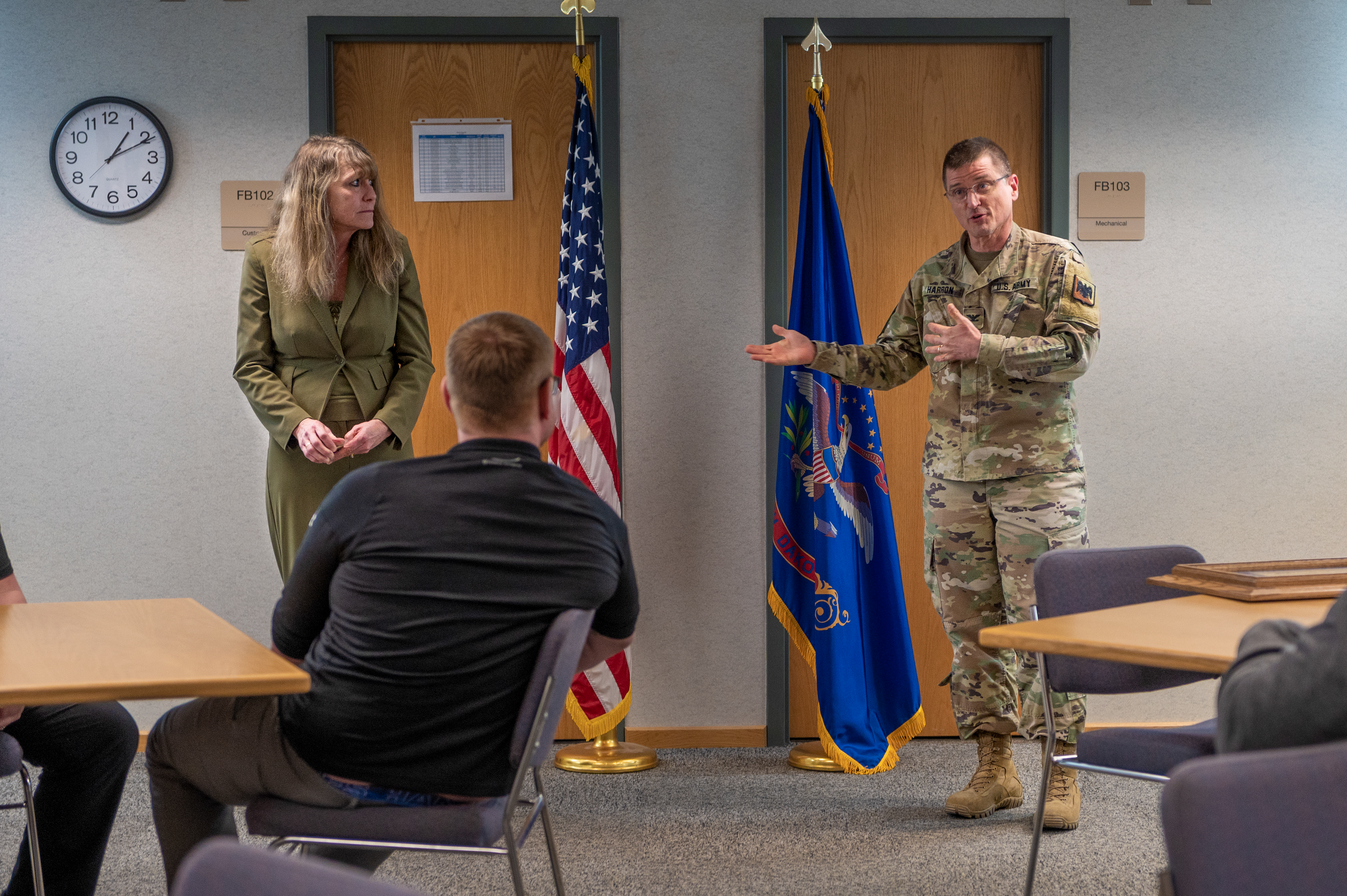 The N.D. Army National Guard Recruiting and Retention Battalion (RRB) conducted onboarding training for new recruiters and staff, Raymond J. Bohn armory, Bismarck, March 30 to 31, 2022. (National Guard story and photos by Sgt. 1st Class Charles Highland, N.D. National Guard Public Affairs Office)