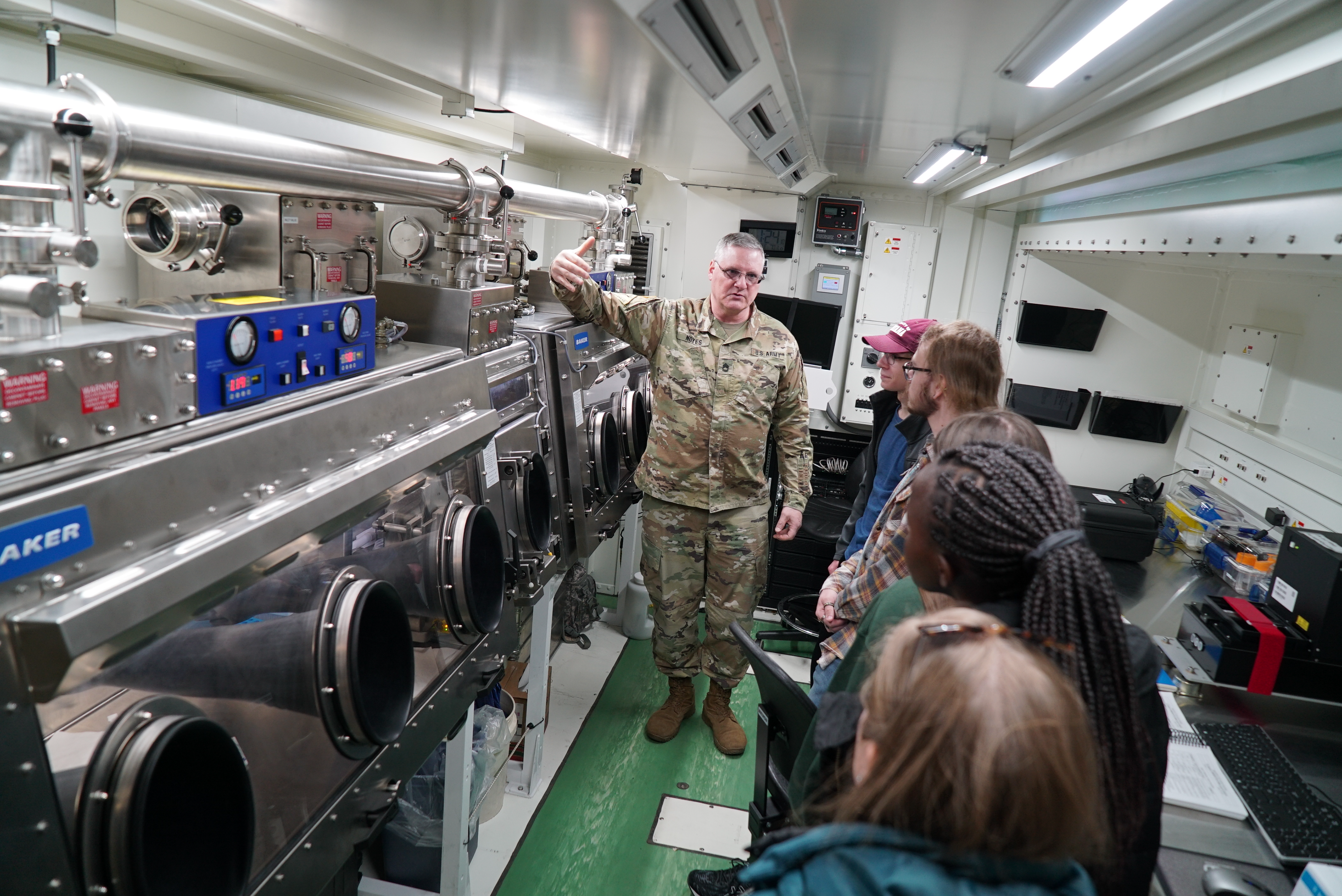 Members of the 81st Civil Support Team provide Bismarck State College chemistry students an orientation of their emergency response equipment, Bismarck, March 29, 2022.