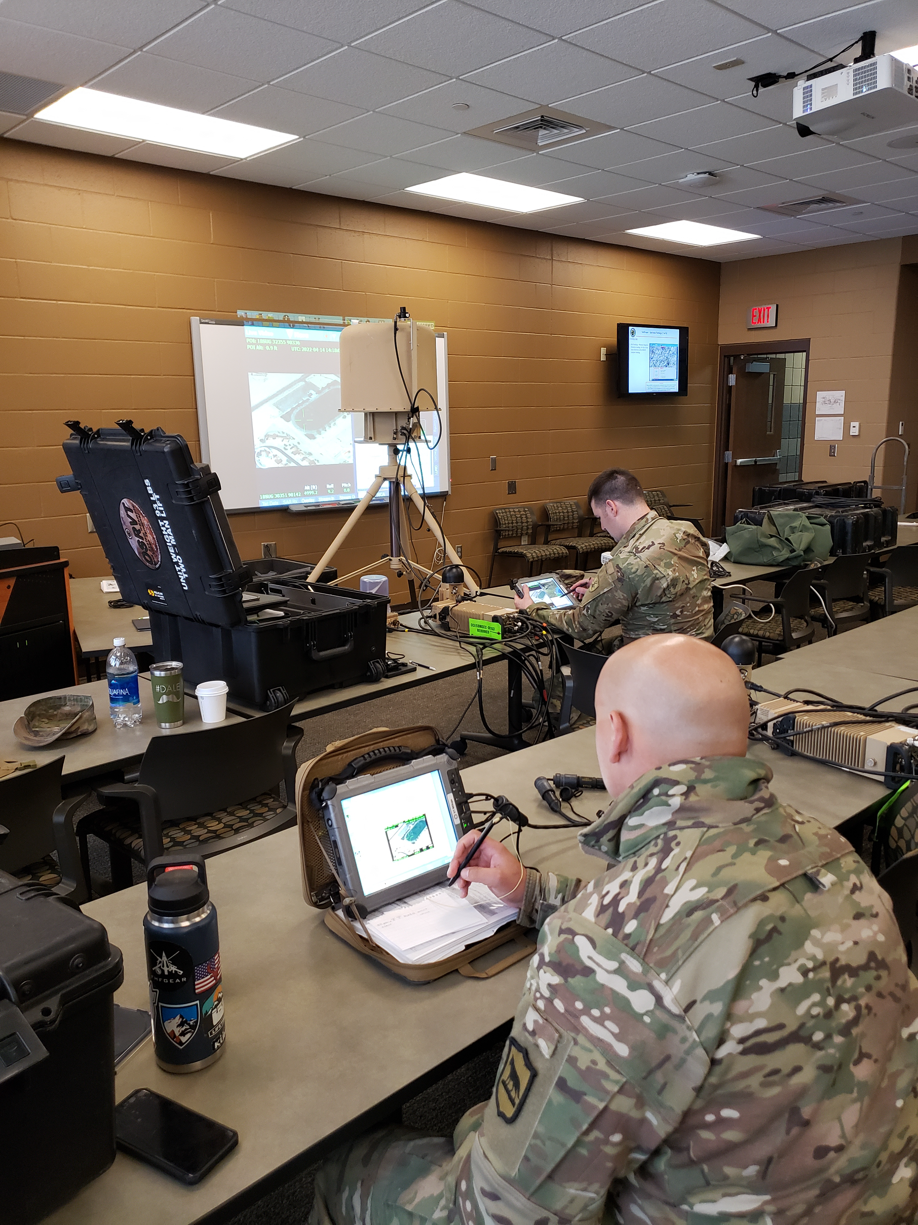 North Dakota National Guard Soldiers joined South Dakota Guard Soldiers on training with the new One System Remote Viewing Terminal at the South Dakota Army Reserve National Guard Readiness Center, April 11 to 15, 2022, Watertown, S.D. (National Guard story and photos by Staff Sgt. Joseph Pikarski, 817th Engineer Company)