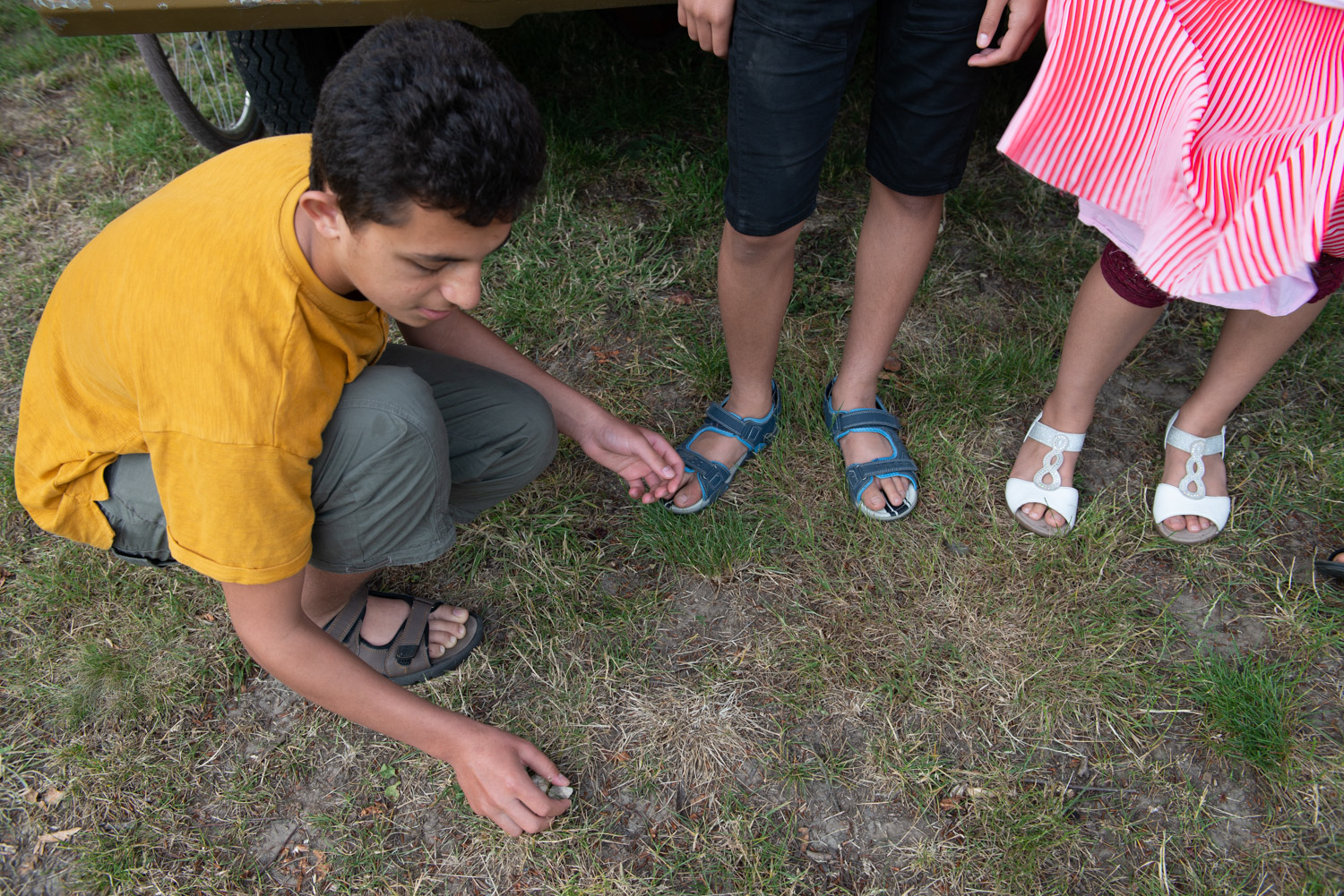 Fadi demonstreerde indrukwekkende 'bikkelskills'. Ook in Syrië kennen ze het spelletje met de stenen onder de naam 'Liekeita'. Fadi heeft het aan zijn kinderen geleerd zodat ze het spel konden demonstreren op onze collectiedag. Kleif kan ondertussen ook aardig wat bikkelen en speelt het spelletje nu vaak met zijn broers en zus.