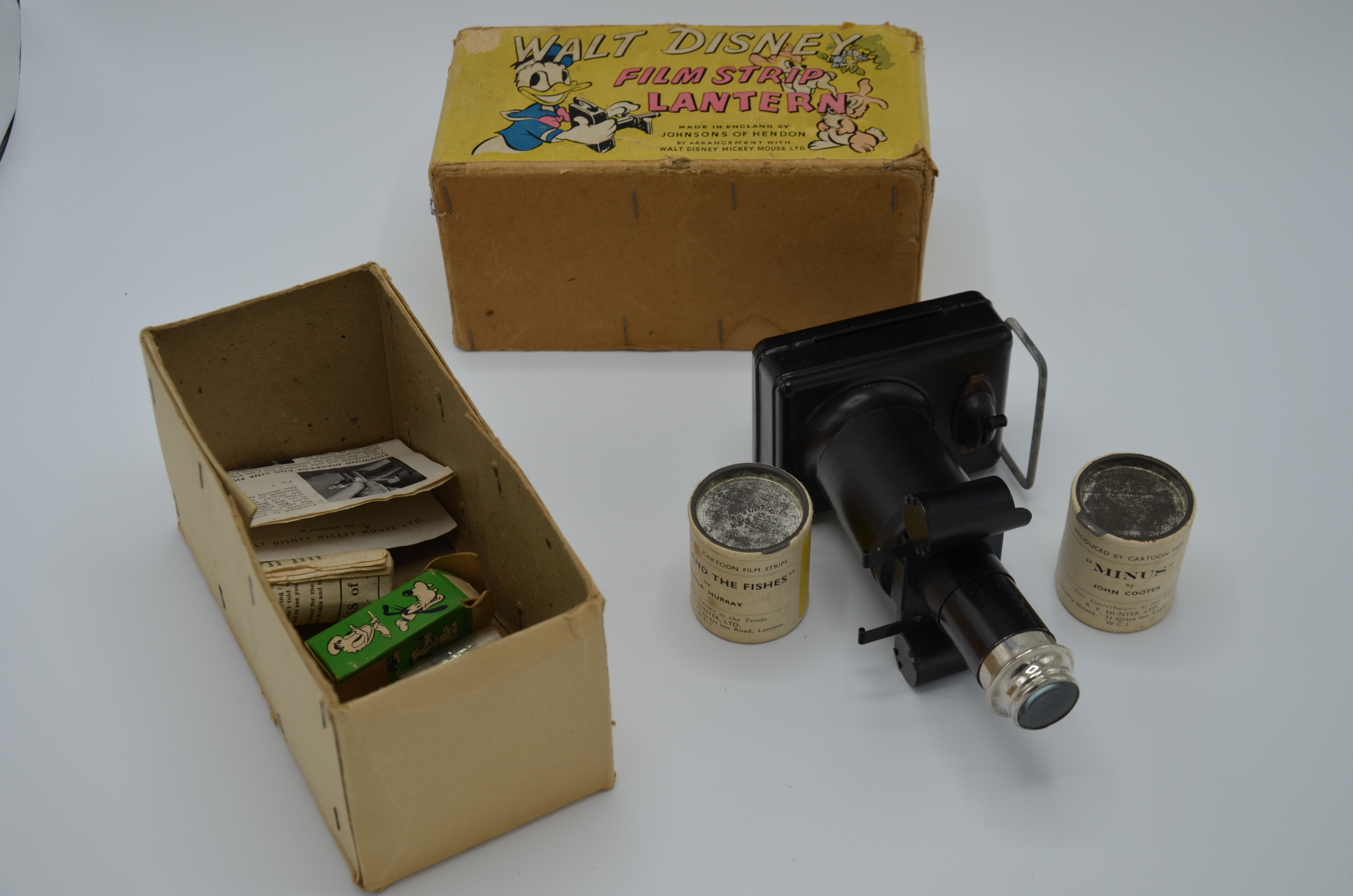 Met dit spel kon men kleine filmrolletjes afspelen. In het doosje zitten ook kaartjes met bijpassende dialogen.