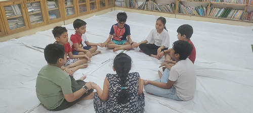 Breathing exercises and eye ball movement exercises were conducted with teacher assistance to promote relaxation and eye health.