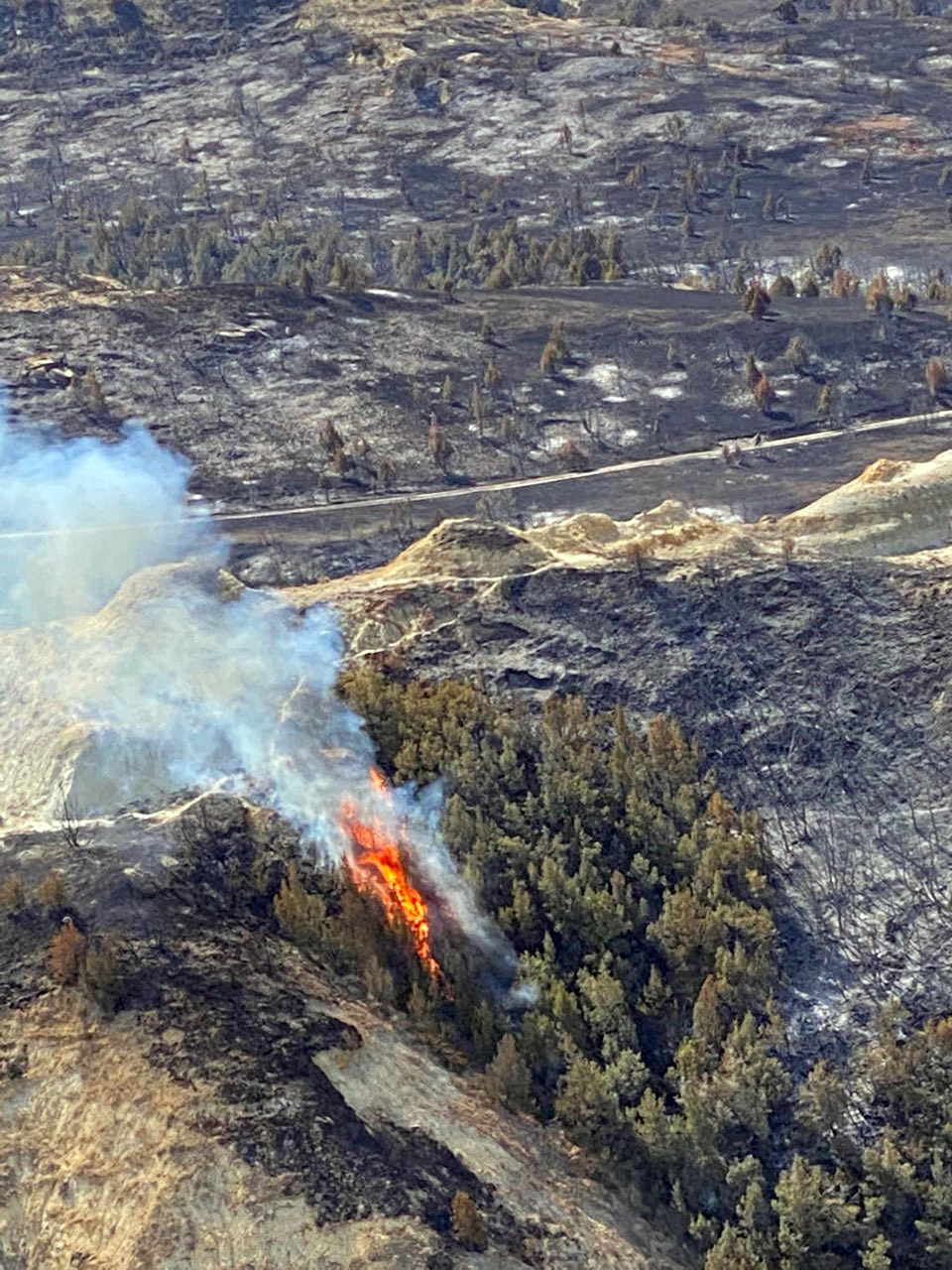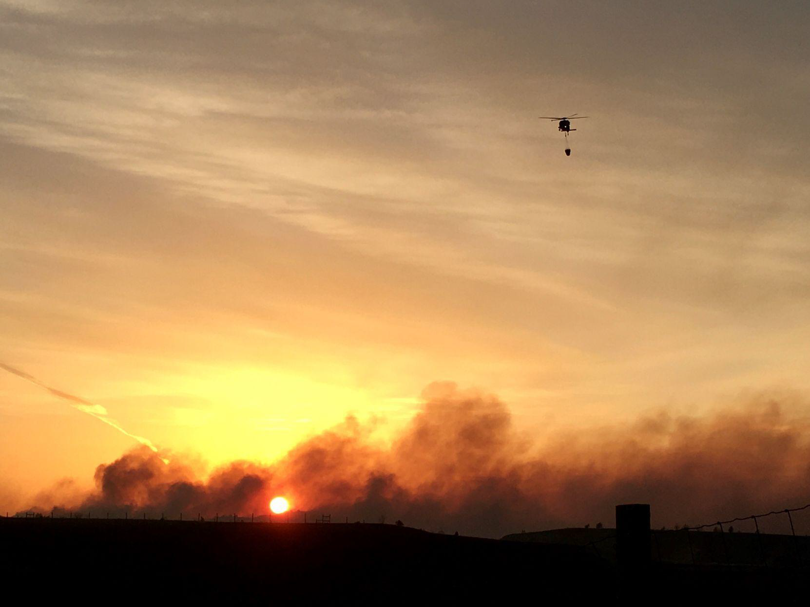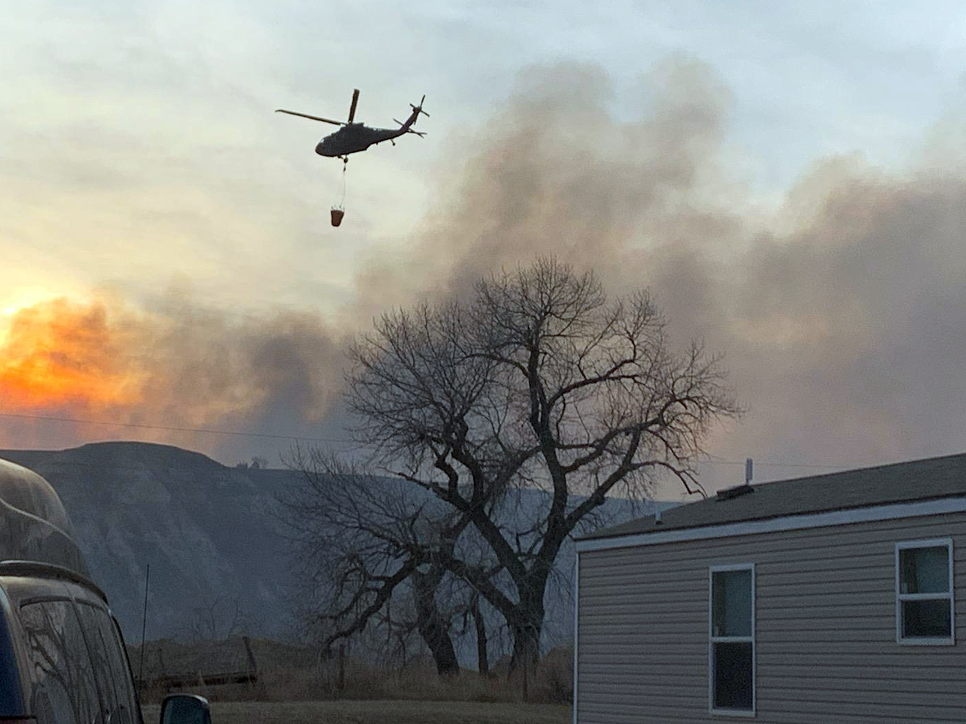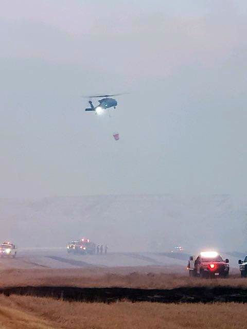 The N.D. National Guard responded, after coordination with the N.D. Department of Emergency Services, with two UH-60 Black Hawk helicopters, each with 600-gallon water buckets. The helicopters dropped eight bucket loads on the fire at the direction of the N.D. Forest Service on April 1, 2021.