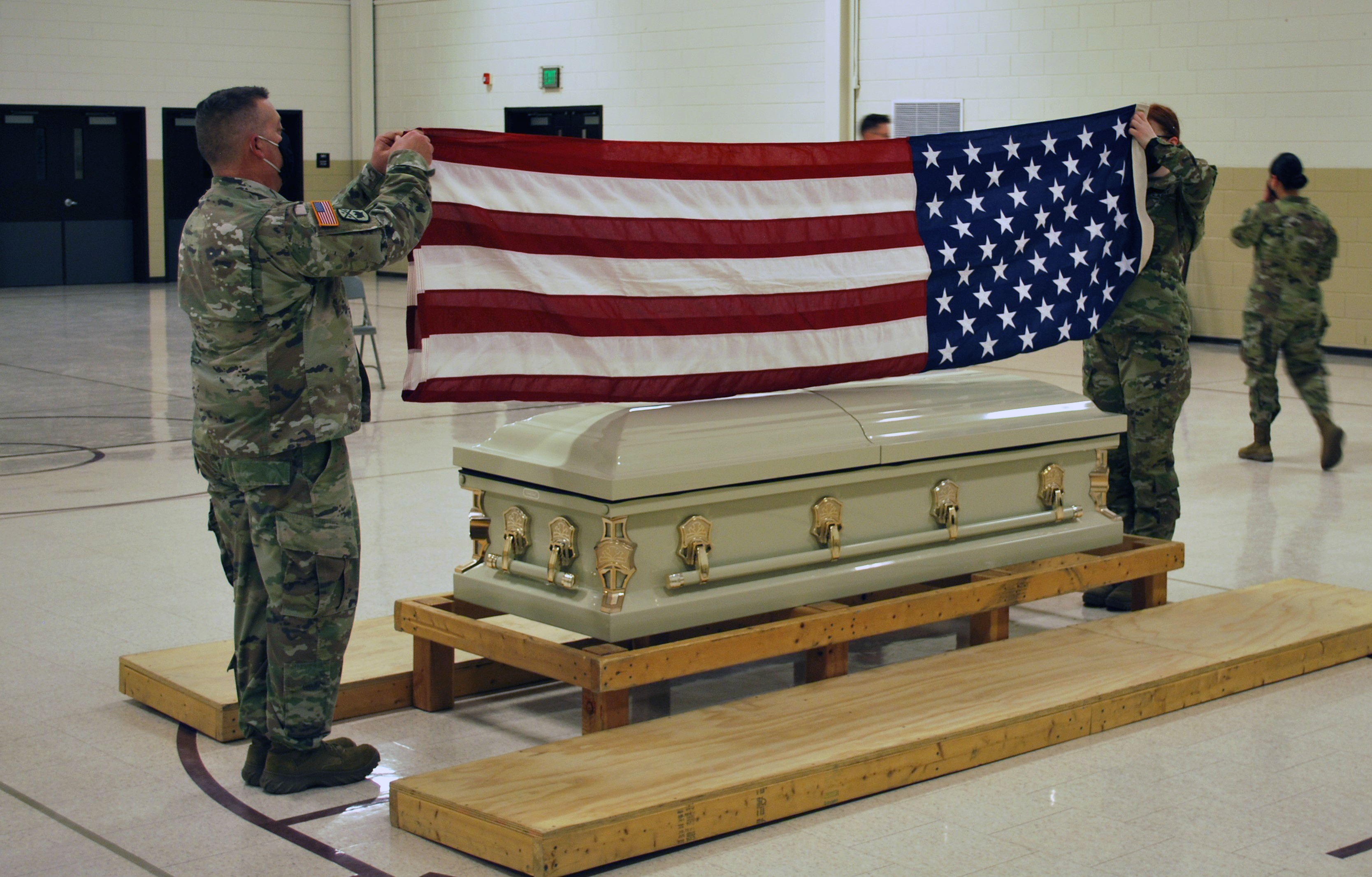 Providing proper honors for service members' final recognition is extremely important. The N.D. Army National Guard's 40-hour MFH course is challenging and requires Soldiers to flawless learn to perform all movements and activities associated with a funeral ceremony. The latest course was conducted at Camp Grafton Training Center, near Devils Lake, N.D., March 14 to 19, 2021. Ten Soldiers were enrolled in the course led by Sgt. Collin Brumskill and Sgt. Kathryn McLaughin.