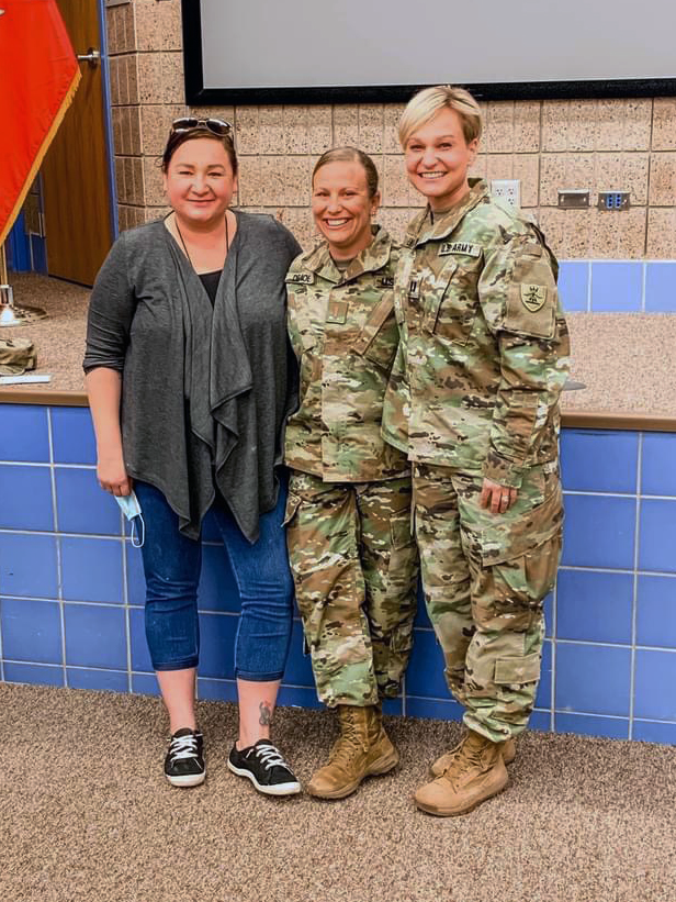 Photo: From left, Spc. Ashley Jahner, 2nd Lt. Erin Demoe, and Capt. Vanessa Lennick at Demoe's commissioning ceremony, Bismarck, N.D., March 22, 2021. (Courtesy photo)