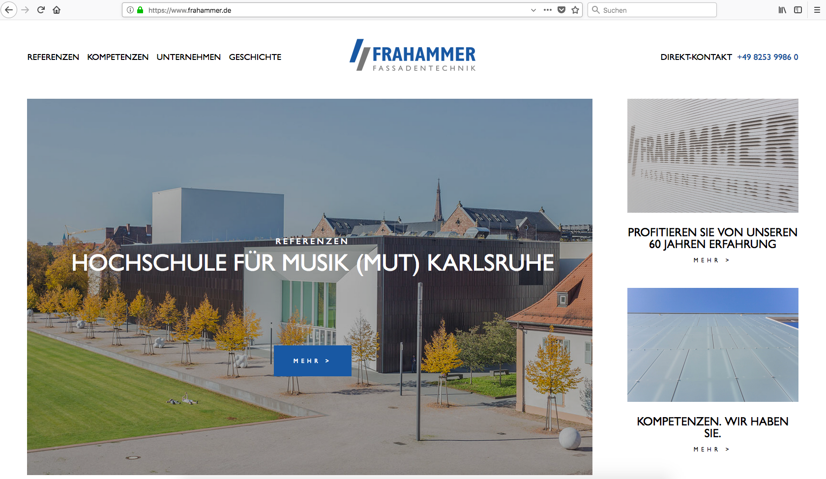 Neue Frahammer-Homepage (Architekturfassaden) I "Go Live" im April 2018 I Aufgaben: Inhaltiche Konzeption, Projektsteuerung und Texterstellung I Link zur Webseite