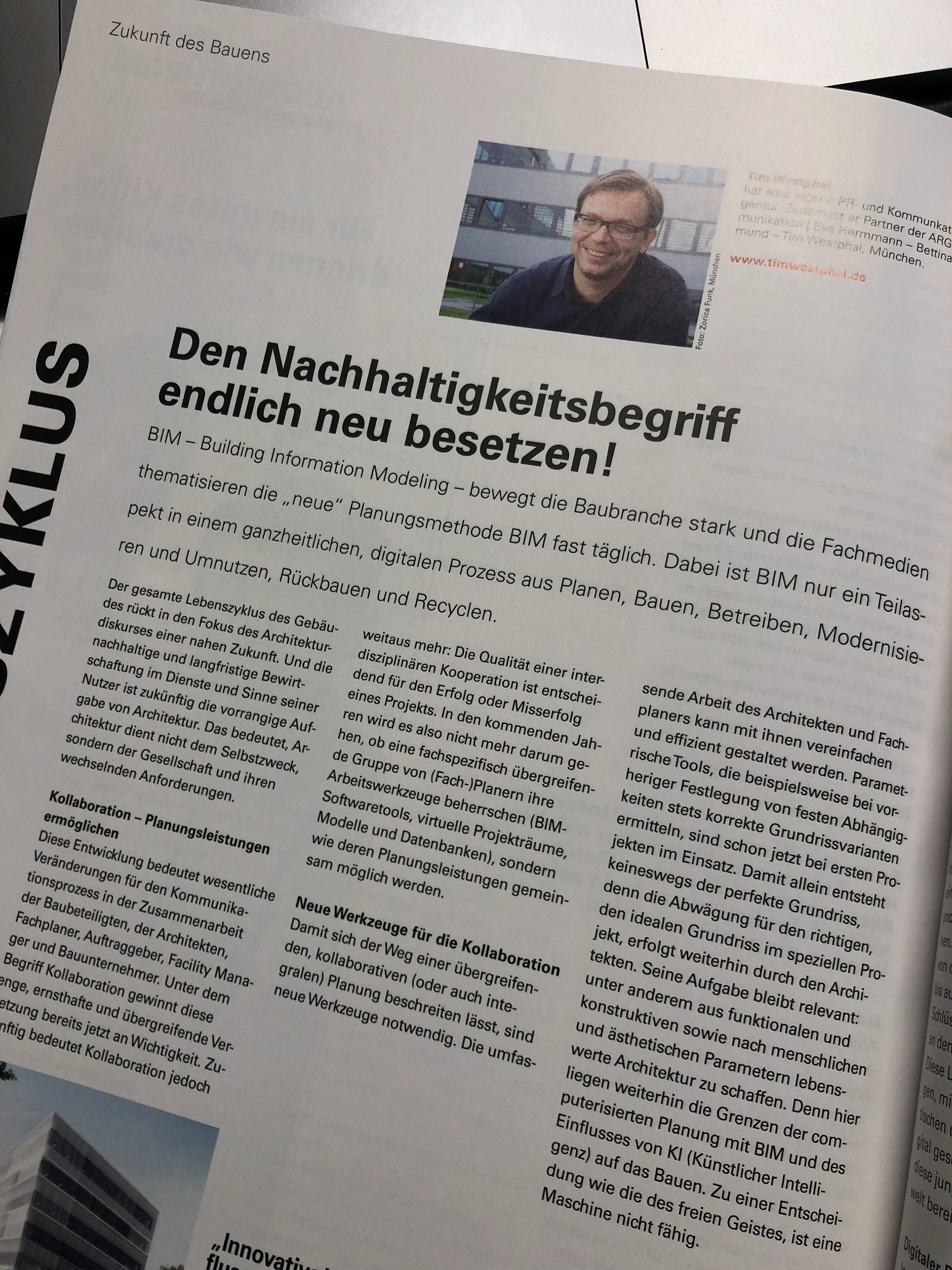 Spezialisierung zu Themen der Digitalisierung des Bauwesens (Redaktion, Moderation, Vorträge) sowie umfassende Expertise und großes Netzwerk in diesem Bereich.