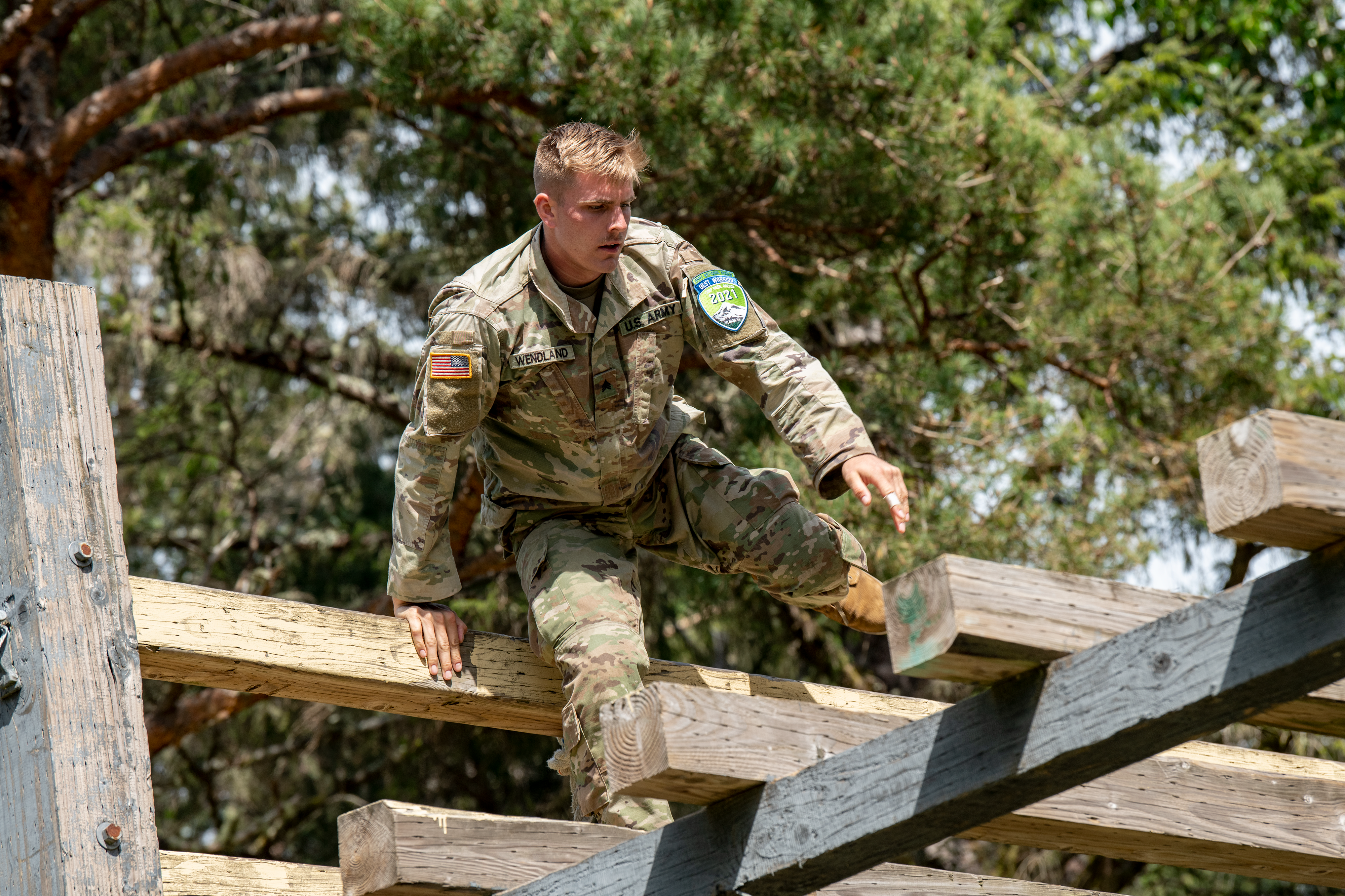 North Dakota Army National Guard Sgt. Brandon Wendland, 957th Engineer Company, took top honors in the noncommissioned officer (NCO) category for the Region VI Best Warrior Competition (BWC) 2021 at Camp Rilea, Oregon, May 4 to 7, 2021. (National Guard story by Officer Candidate Michaela C.P. Granger, N.D. National Guard Public Affairs)