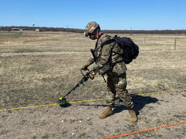 The 119th Civil Engineer Squadron explosive ordnance disposal (EOD) personnel provided a unique training opportunity for several 319th Security Forces Squadron (SFS) military working dog (MWD) handlers from the Grand Forks Air Force Base at the North Dakota Air National Guard (NDANG) regional training site (RTS), May 13, 2021. (Air National Guard story and photos by Chief Master Sgt. David H. Lipp, 119th Wing)