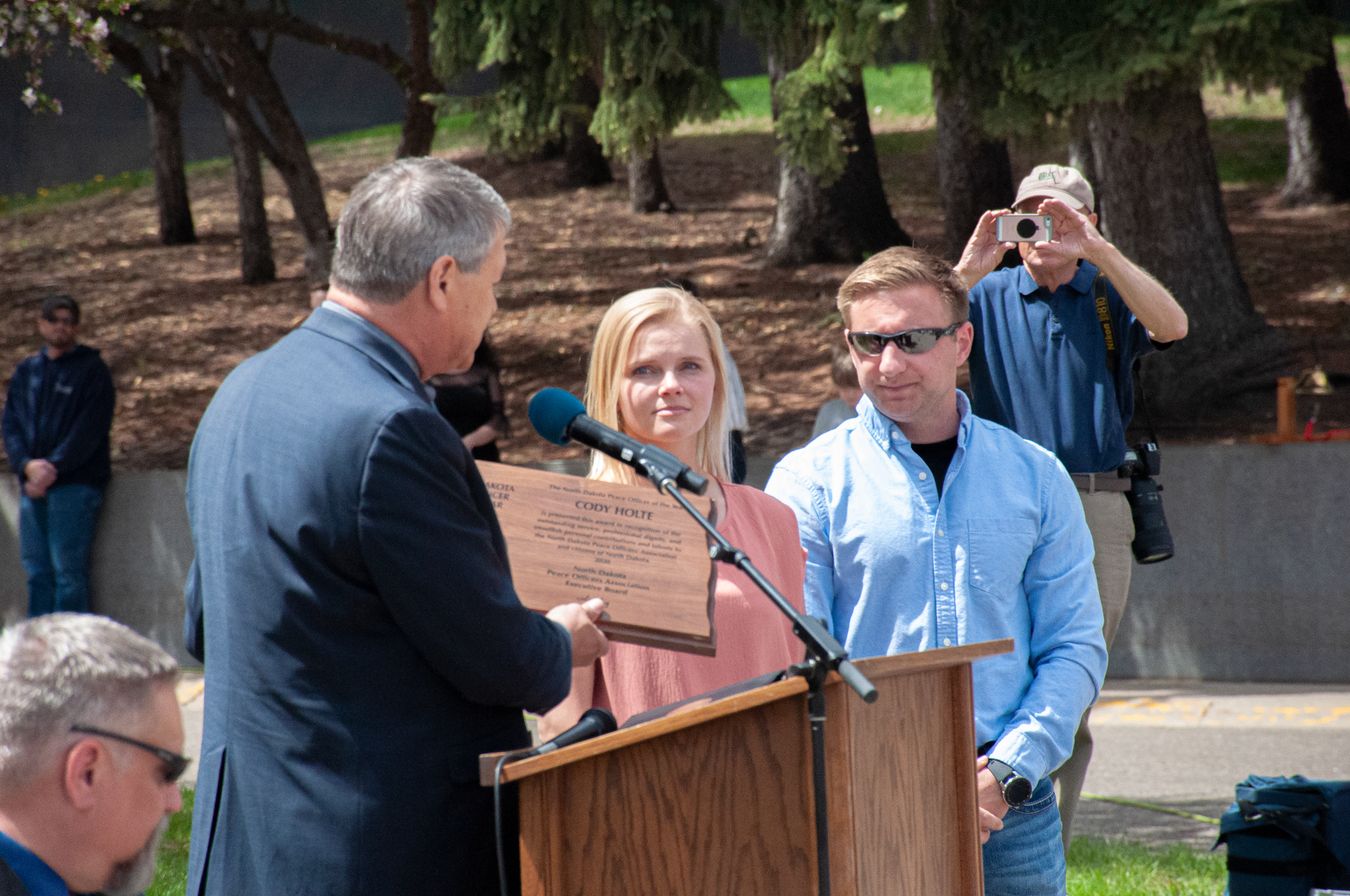 During the ceremony, Wayne Stenehjem, N.D. Attorney General, announced that Holte was posthumously named as the 2020 North Dakota Peace Officer of the Year.