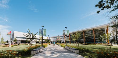 The new facility includes an aquatics center with an accessible leisure pool connected to an outdoor spray park, hydrotherapy features and a large hot tub. The facility also features two community ice rinks and a 780-seat spectator ice arena, as well as a new public library, a gymnasium and a fitness center with a sport medicine clinic. Rounding out the indoor program are multipurpose rooms, all-age facilities with a lounge, a game room, a large reception hall with a commercial kitchen, a café, a child-minding area, offices for the city’s parks and recreation department, and a semi-underground parking structure with 425 stalls.