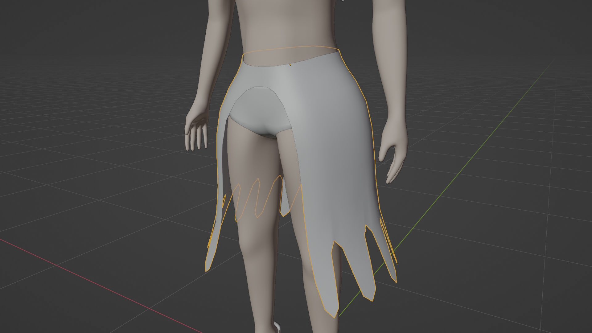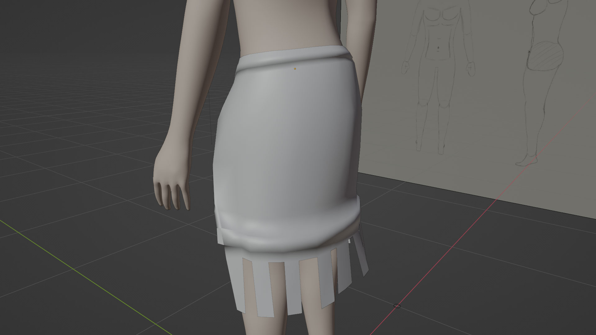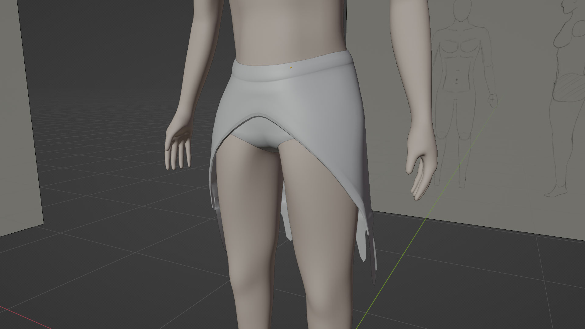 For the skirt, I was going for a mix between bikini skirt and the kind of cloth you would expect from a water-witch. My initial design was lacking in depth, a consequence of having a half skirt means you can see the thin edges of the skirt. An extrusion across the edge of the skirt was created to create a sense of depth that looks even better when subdivided. This required a serious amount of retopology to get working right.