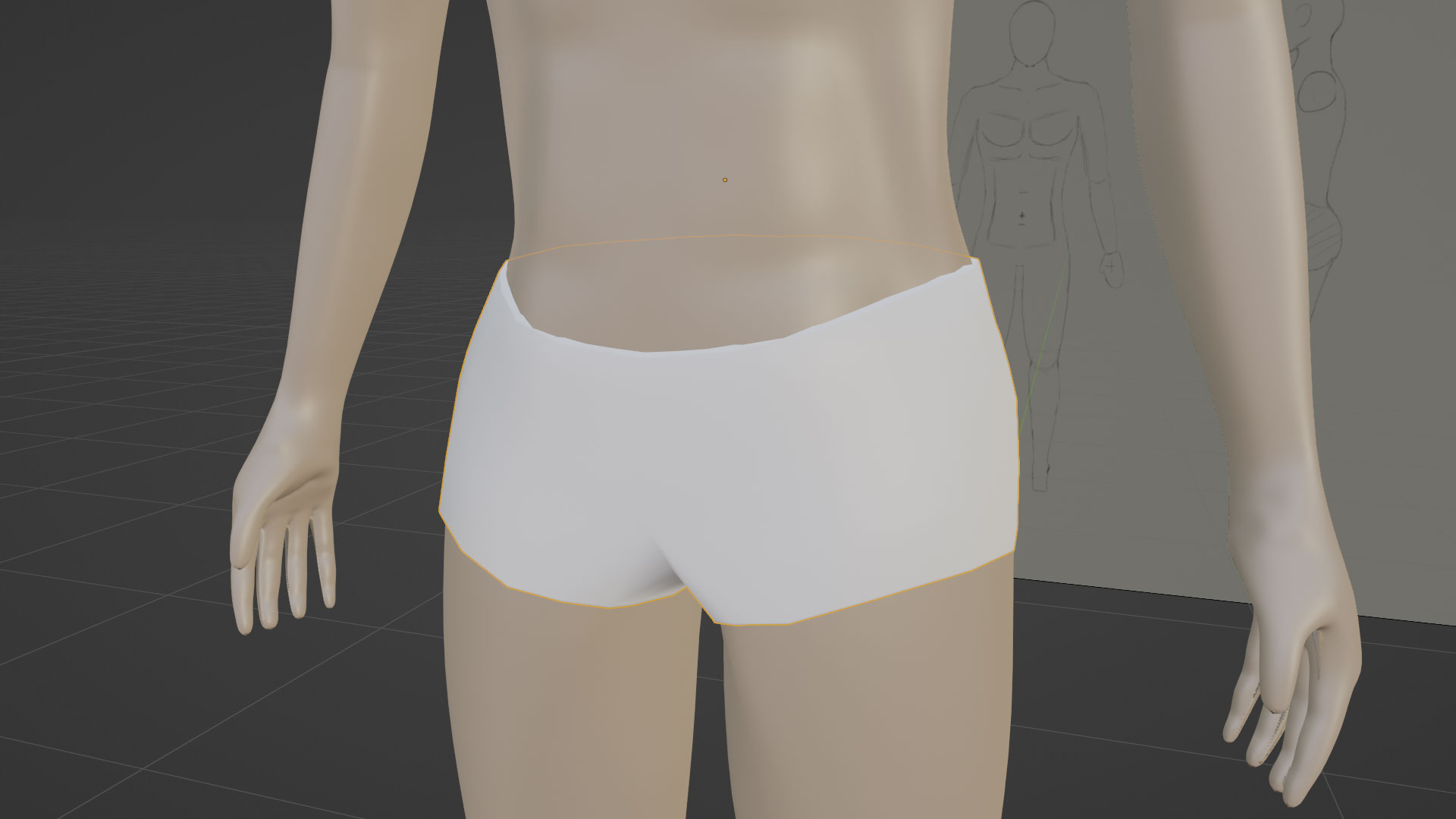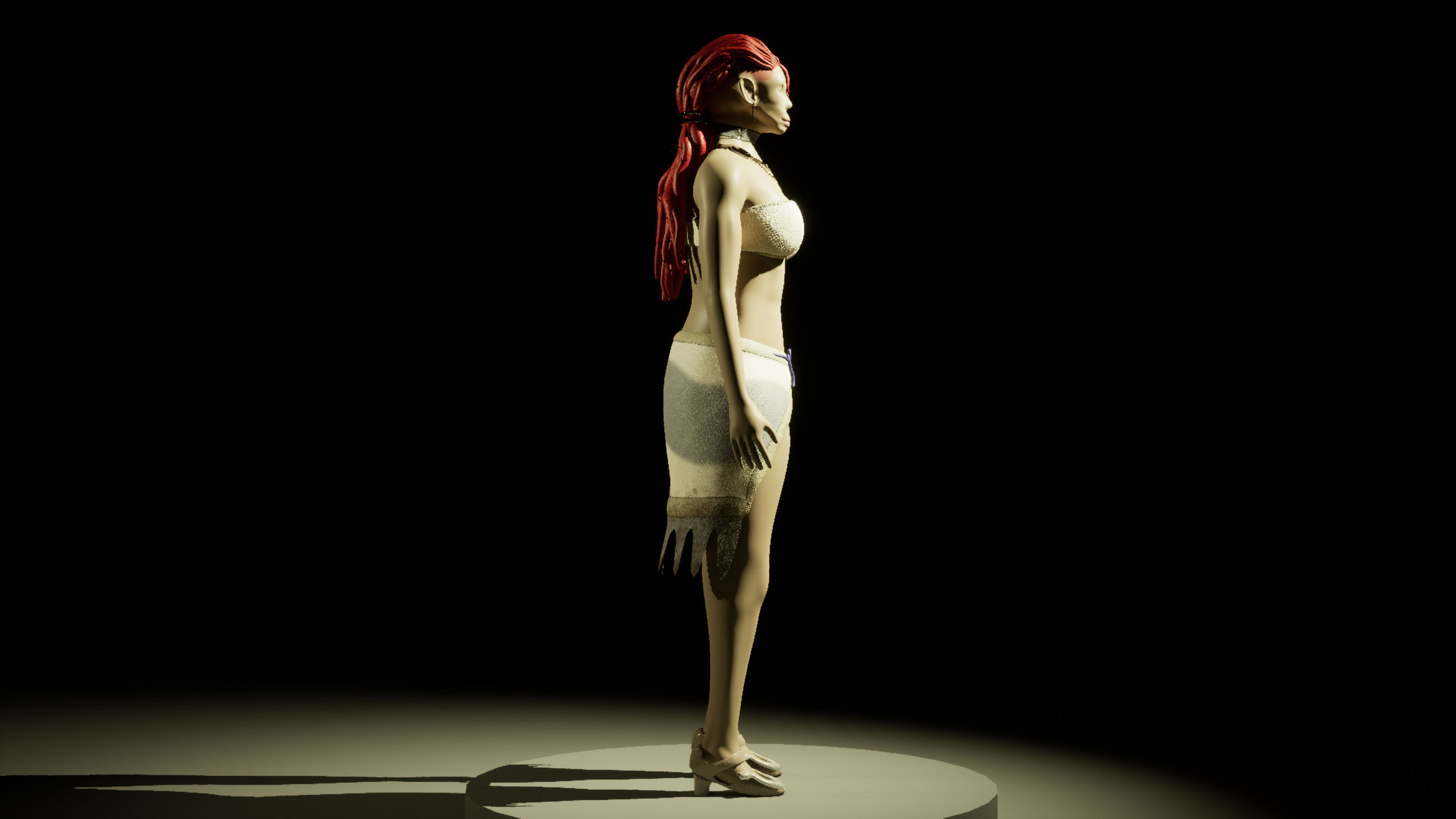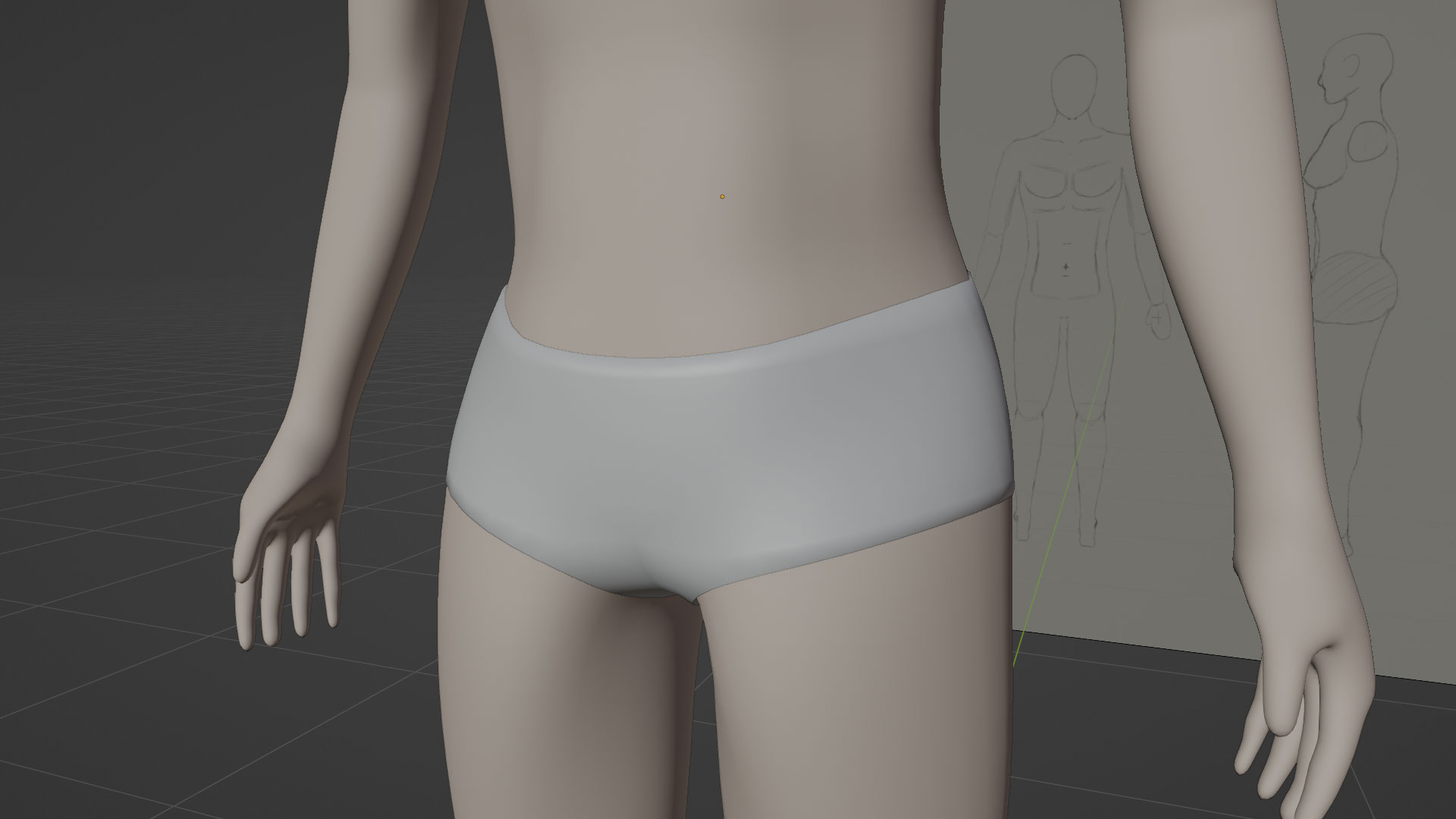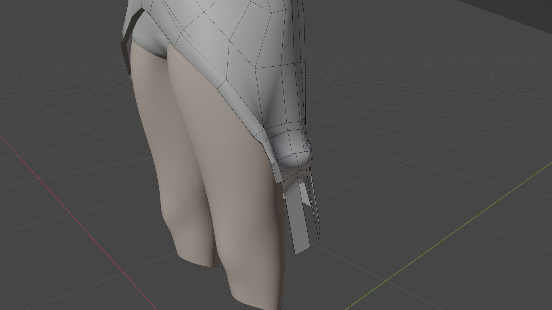For the skirt, I was going for a mix between bikini skirt and the kind of cloth you would expect from a water-witch. My initial design was lacking in depth, a consequence of having a half skirt means you can see the thin edges of the skirt. An extrusion across the edge of the skirt was created to create a sense of depth that looks even better when subdivided. This required a serious amount of retopology to get working right.