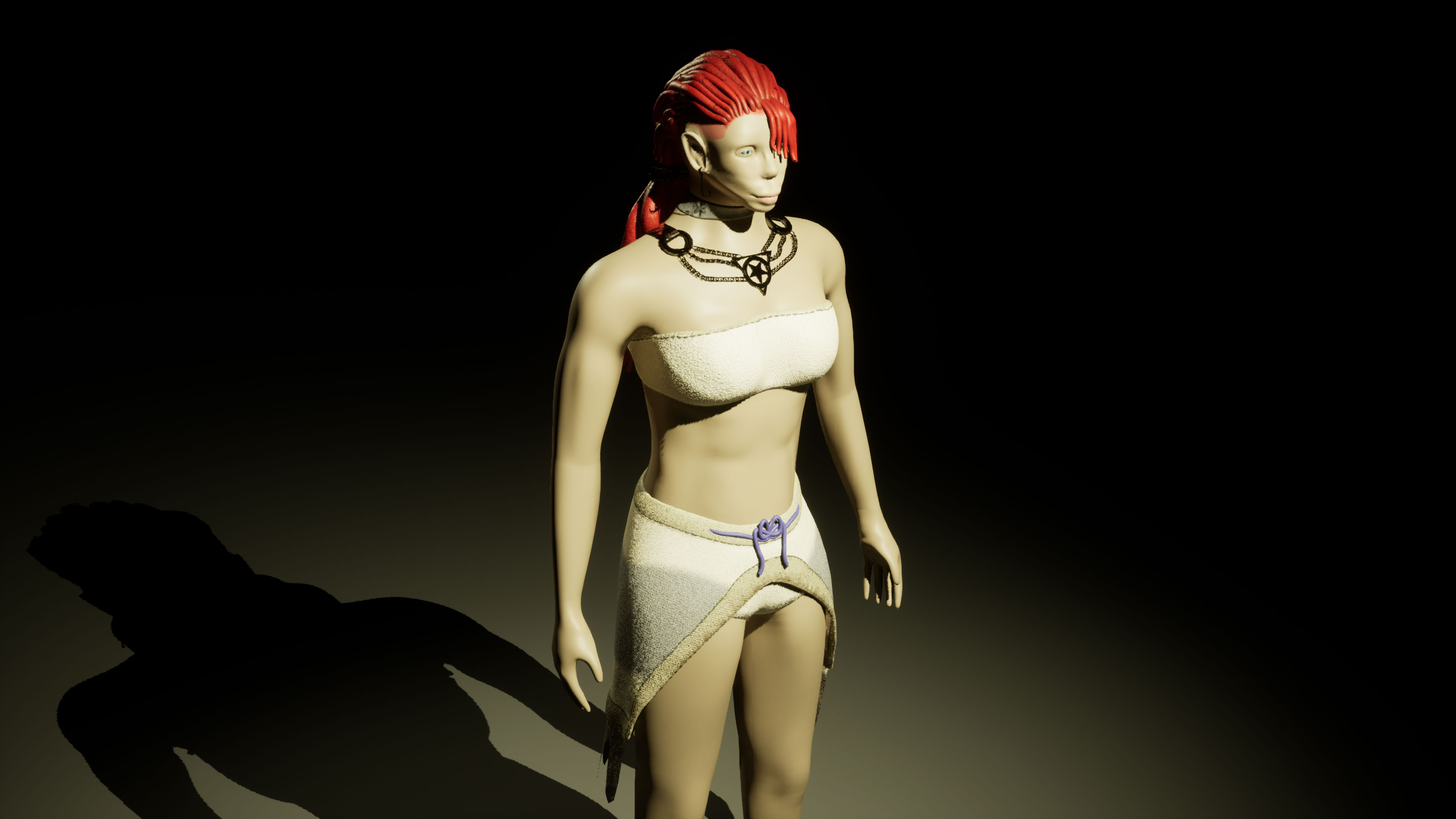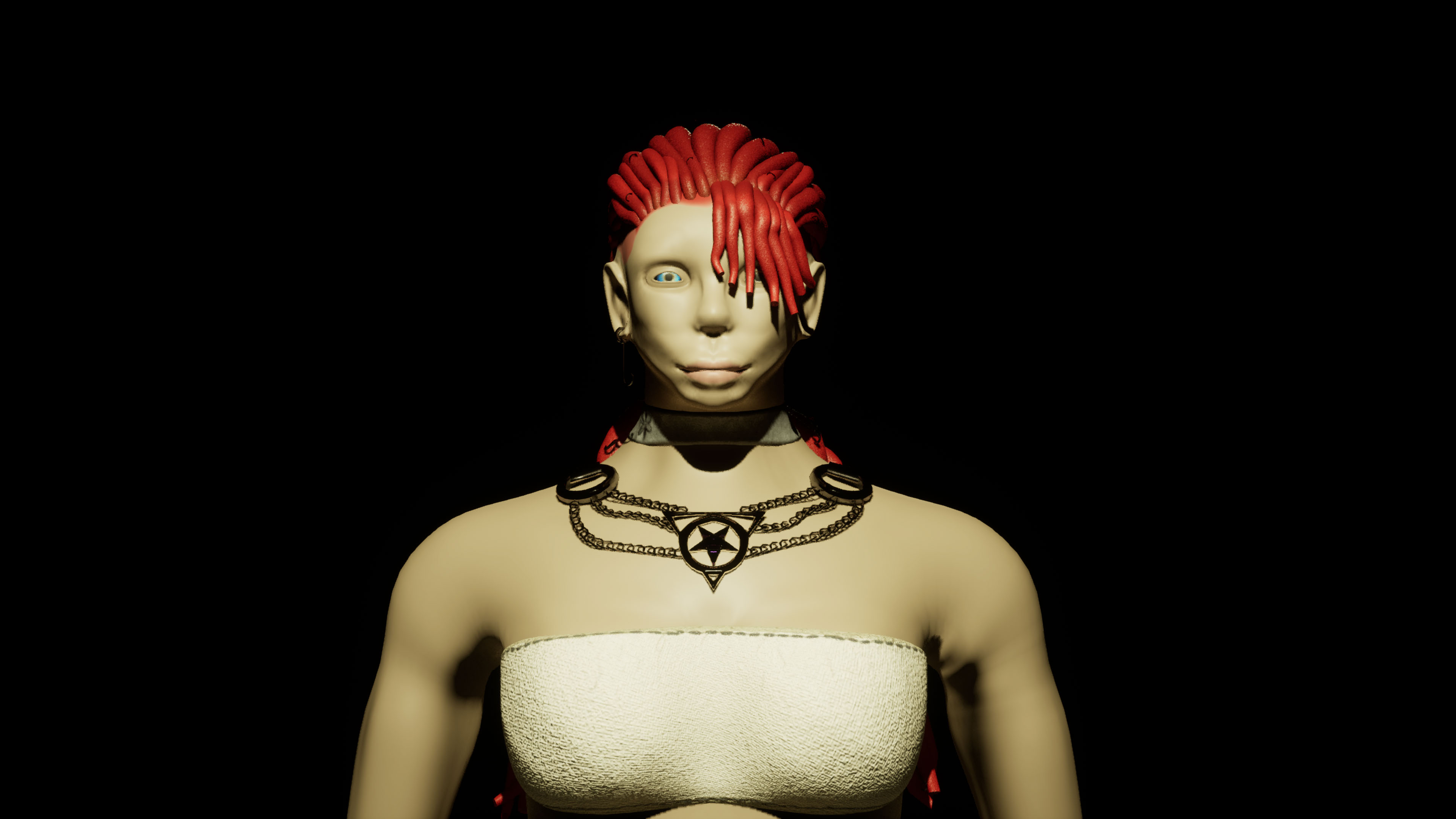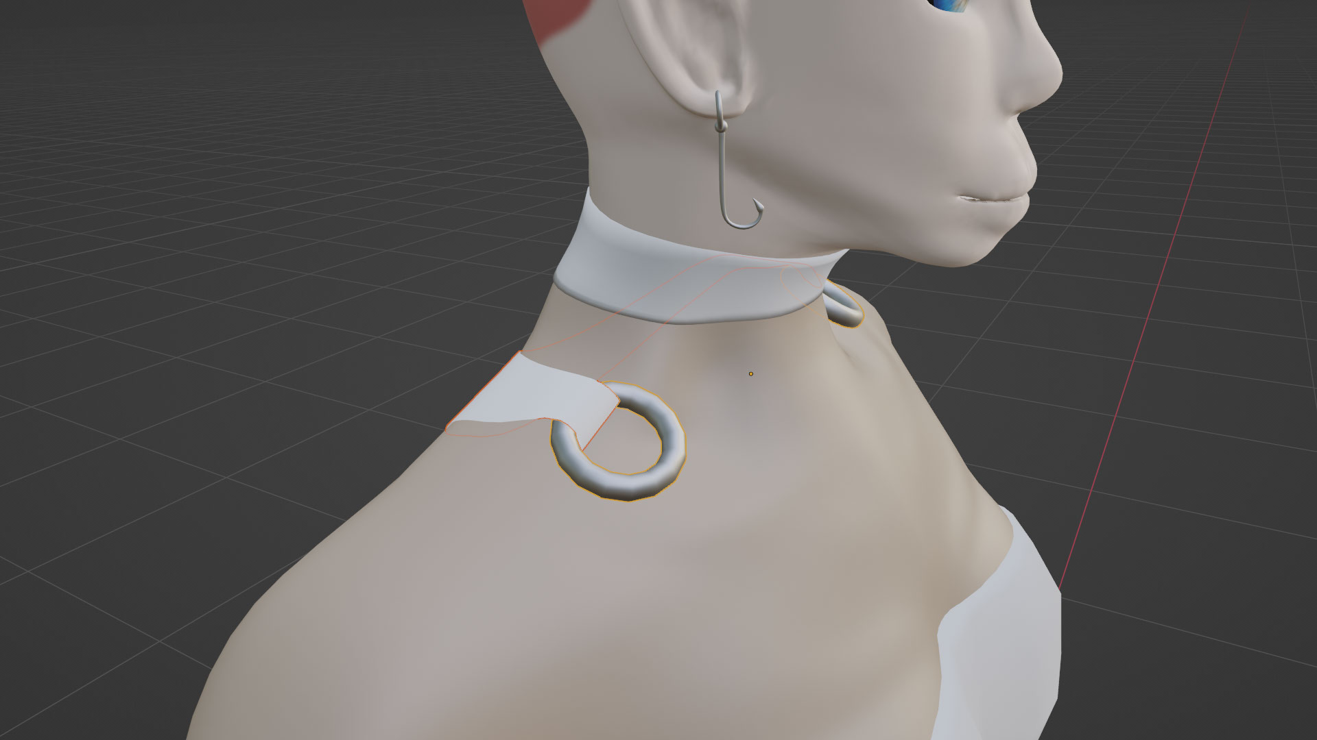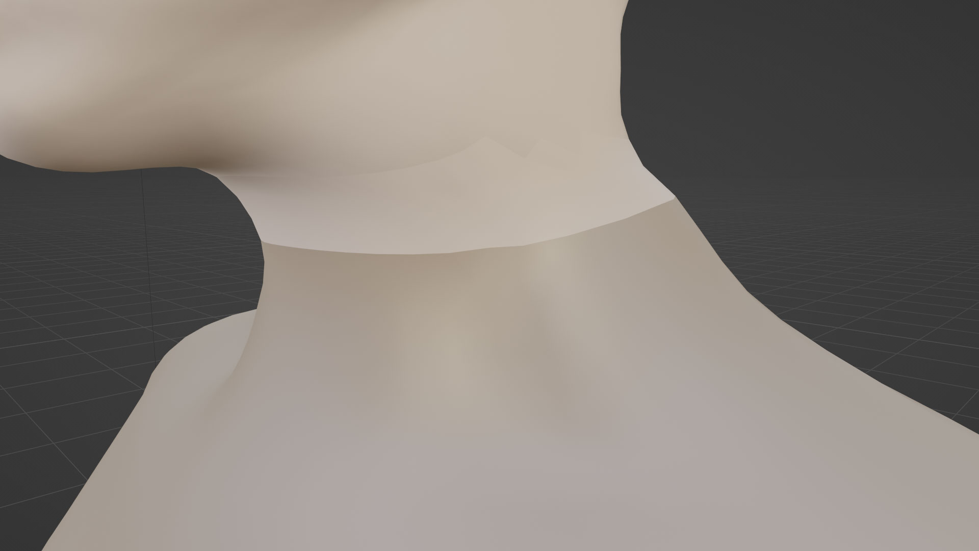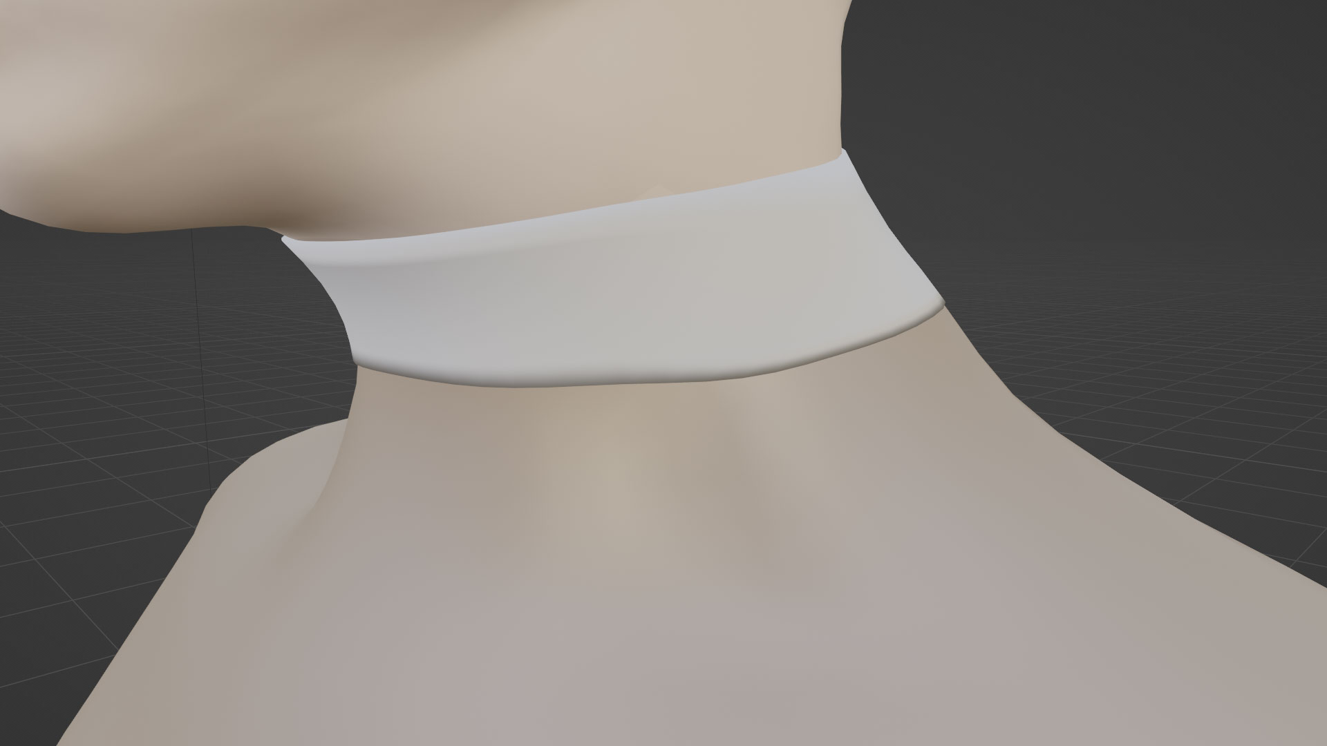 An issue with using two different UV materials was that my character's neckline was looking bad. In order to fix this I would need to redo all of my bump maps and UVs and I was worried about how blender would handle remodelling multiresolution models (see the head). My solution? A choker!