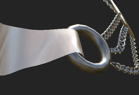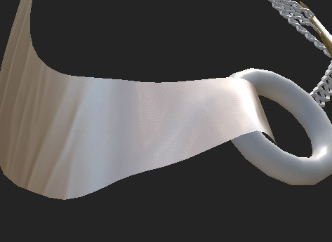 For the back of the necklace, I opted to use the silk material I had discarded in the previous phase. I did this to make the piece look more regal. As for the metallic pieces, they are made of simple metallic materials. The chain in particular will be the same silver material used for all other unimportant wraps of the model (ie. the hooks and other rudimentals)