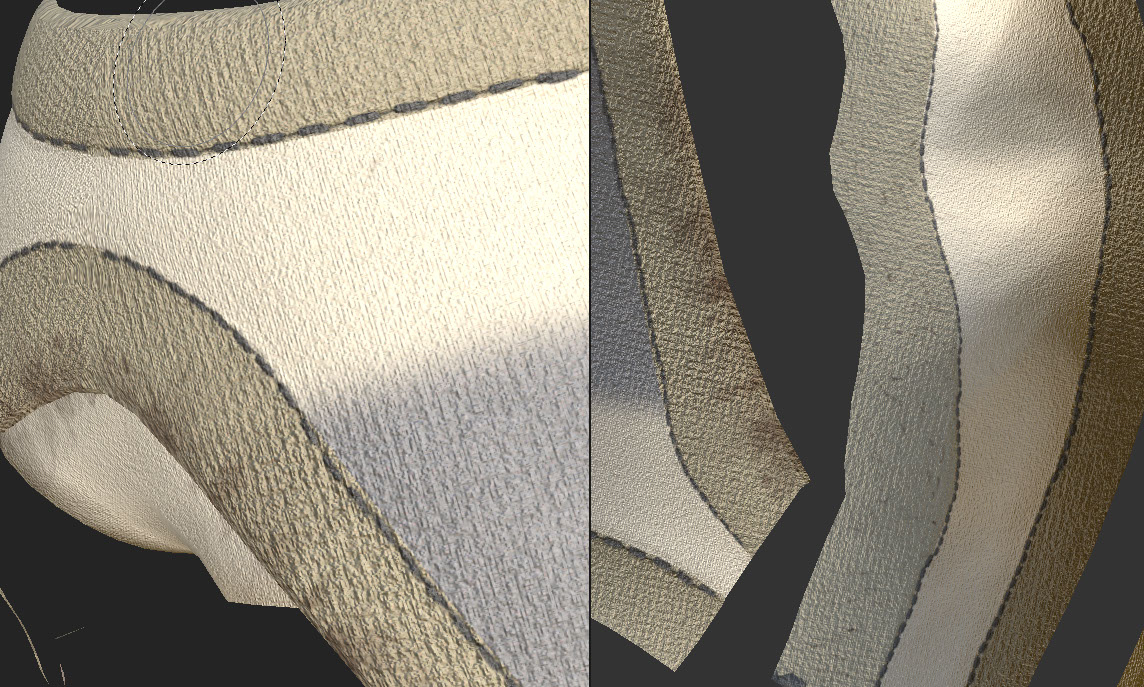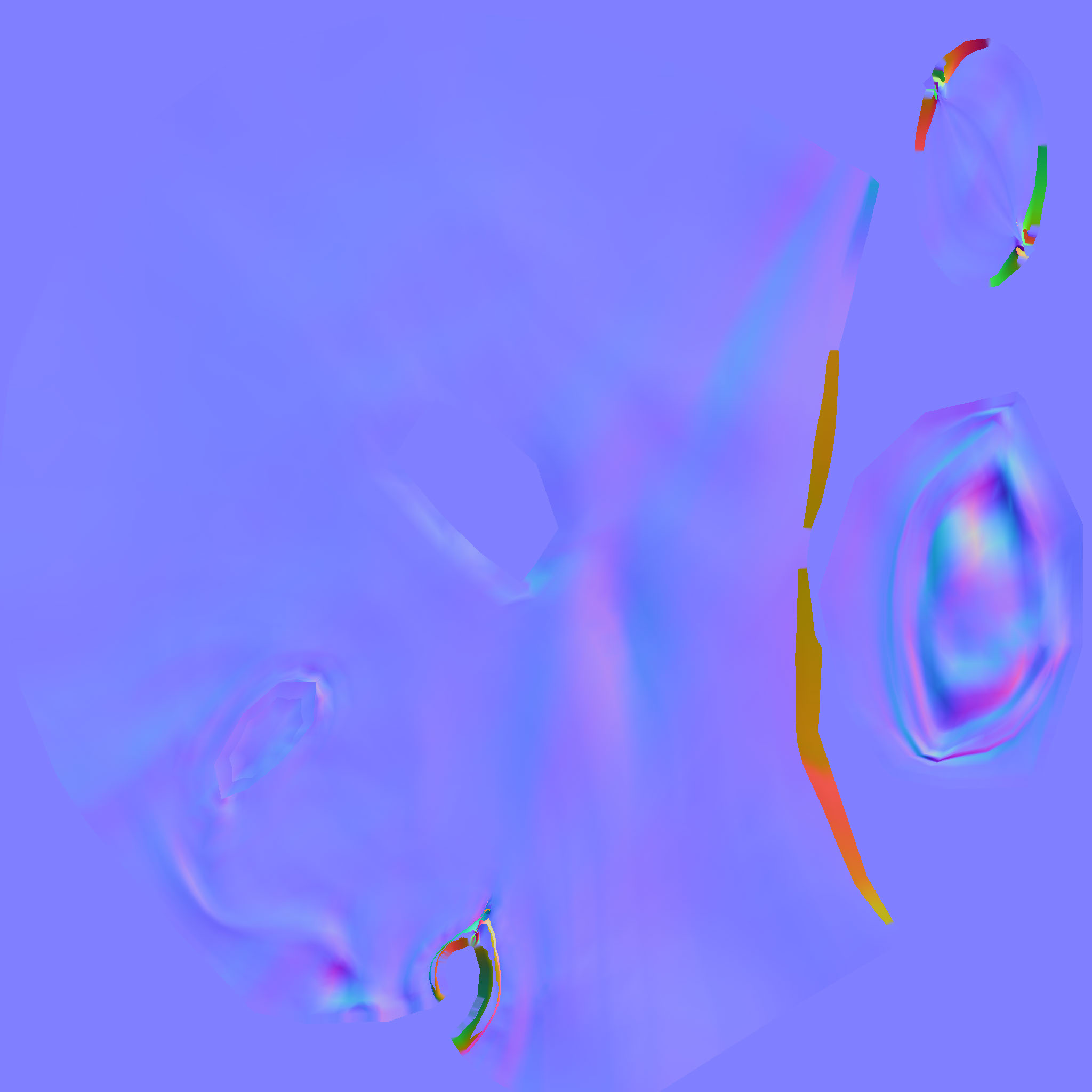 Head and Body: Because of my sculpting method, these are two different UVs. You can see around the neck of my head's normal where I had to resolve issues with the choker