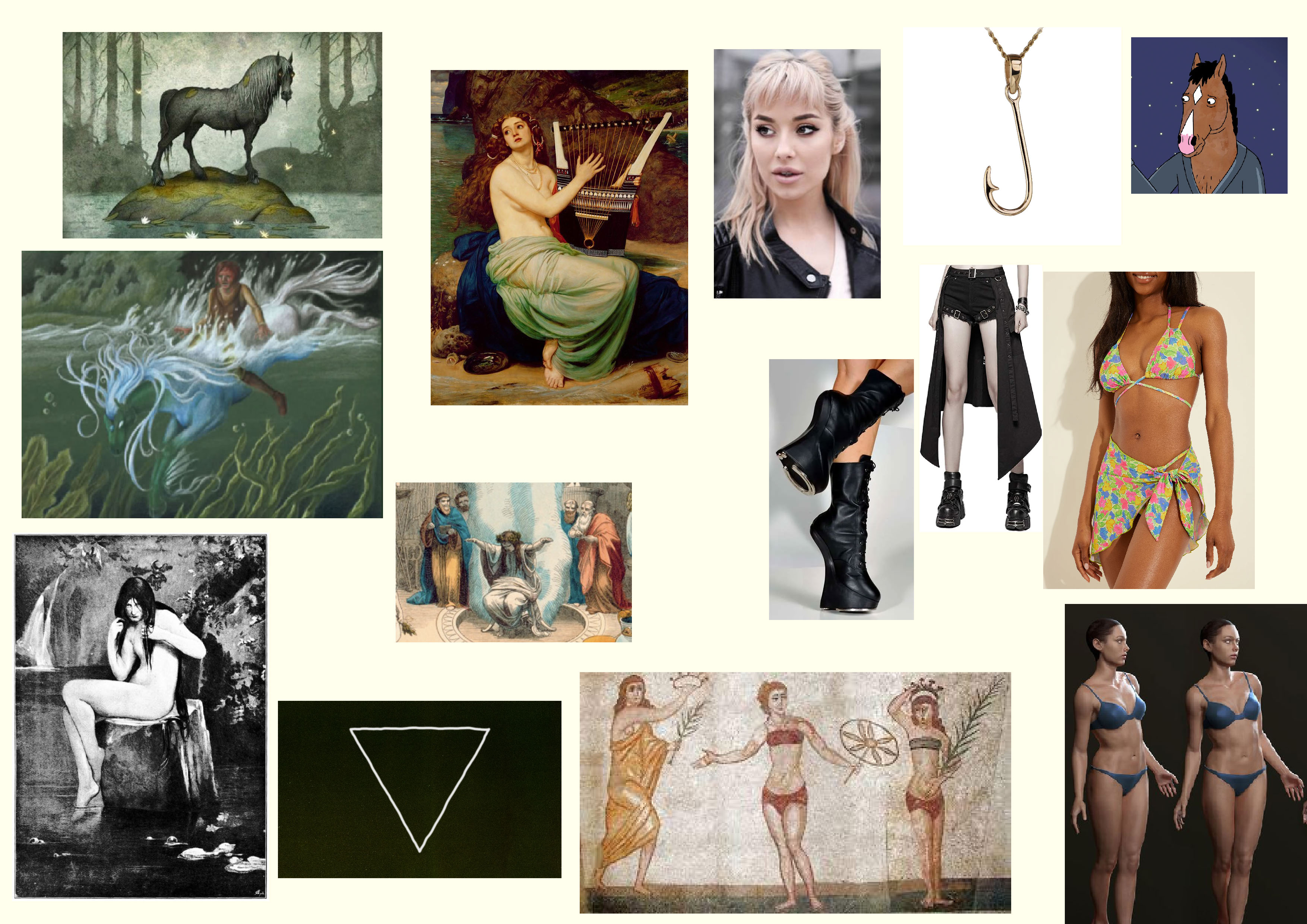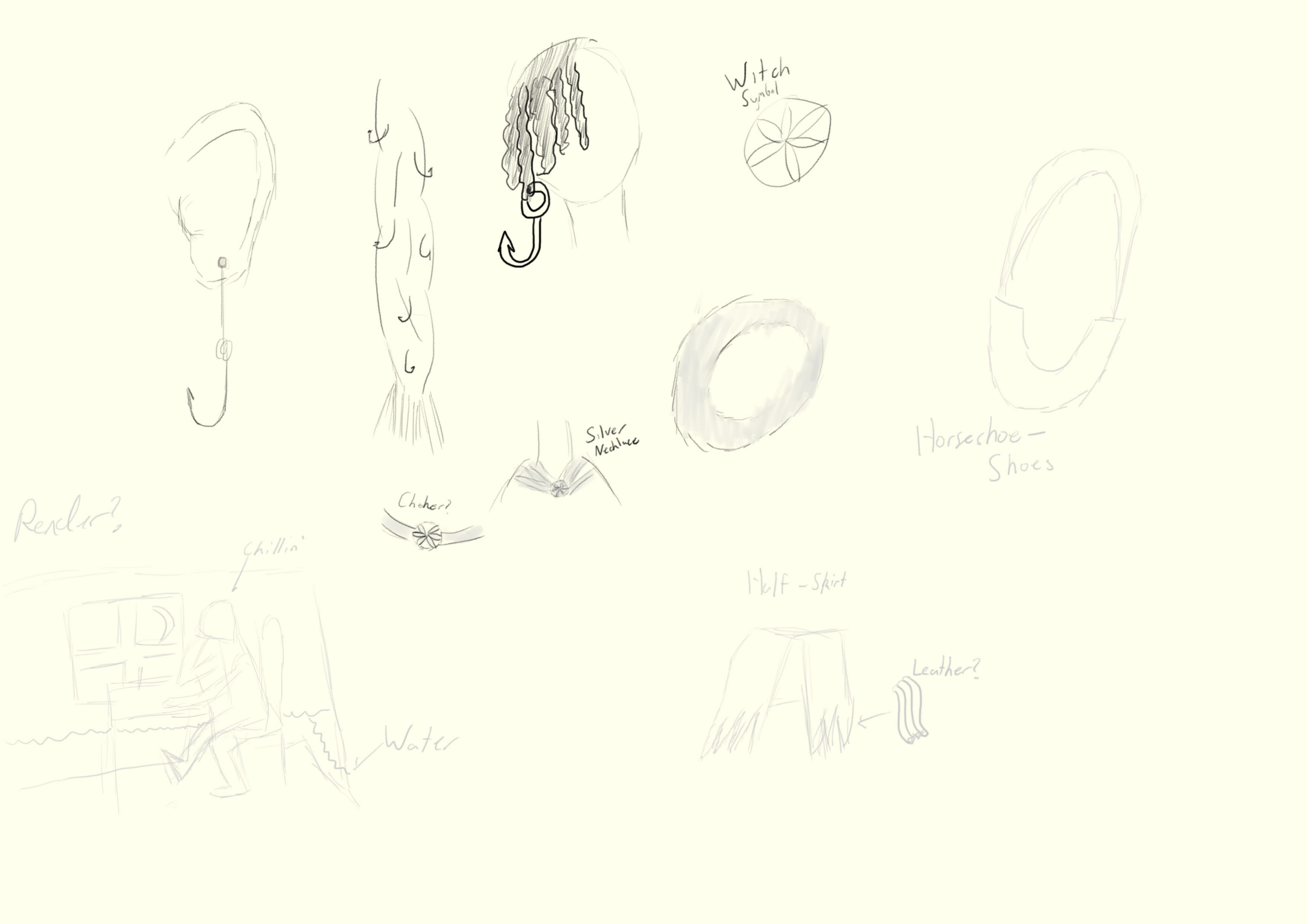 My design is inspired by the tales of the Kelpie, a mythical creature from Scottish Legend. The Kelpie is a water horse known for using tricks to drown people. In some tales, they trick children onto their backs and ride them into nearby lakes due to their sticky-trap manes. In other stories, they shapeshift into humans, but can be discovered once touching on their necklaces (replacing their bridles in human form)