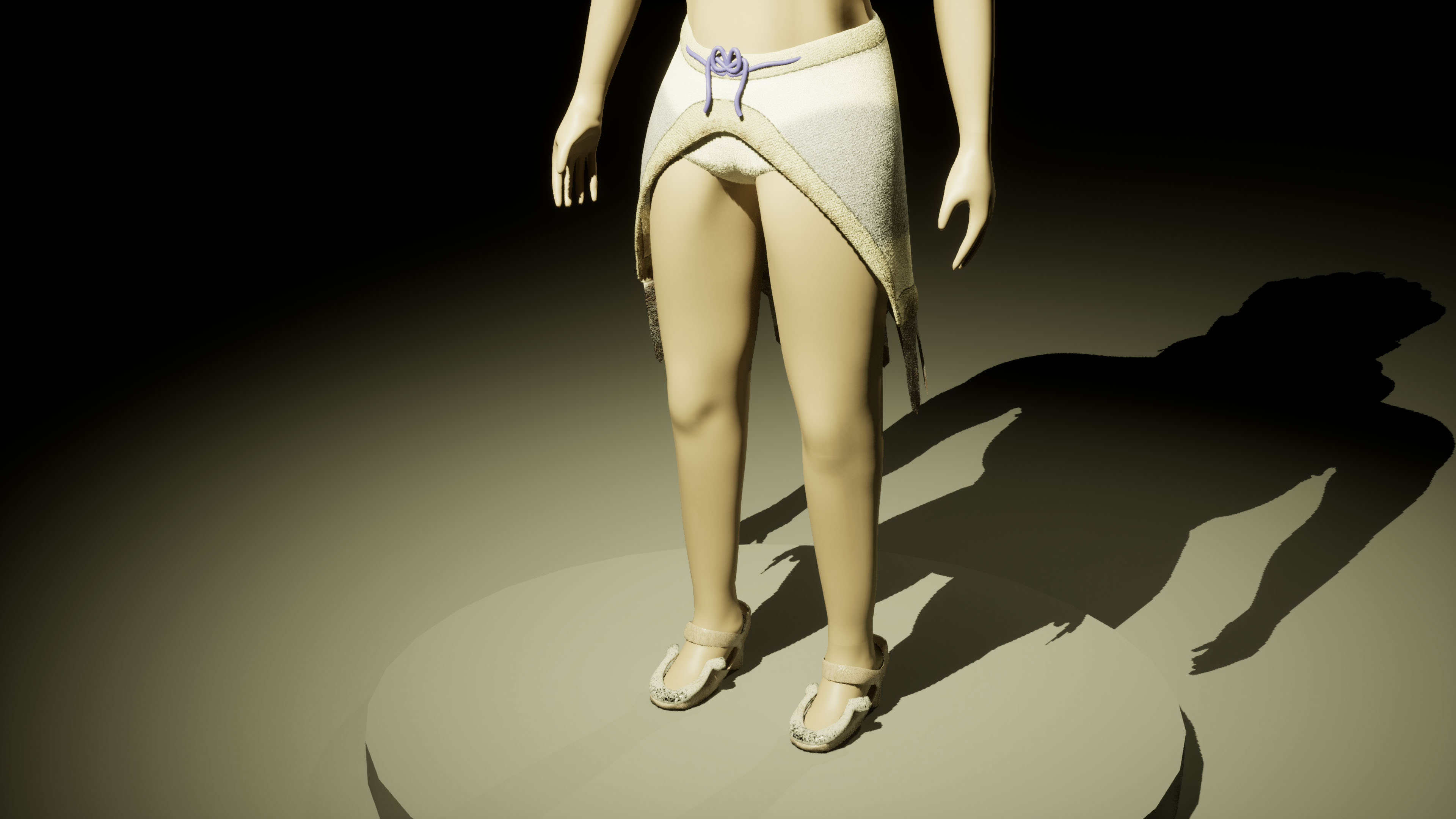 For the clothes, I had initially envisioned a mystical, silken look for the clothes. I attempted to design the clothes with a silk material I found online, but was unsatisfied with how the final product panned out. Instead I redesigned the clothes using a mixed blend of two different cotton materials.