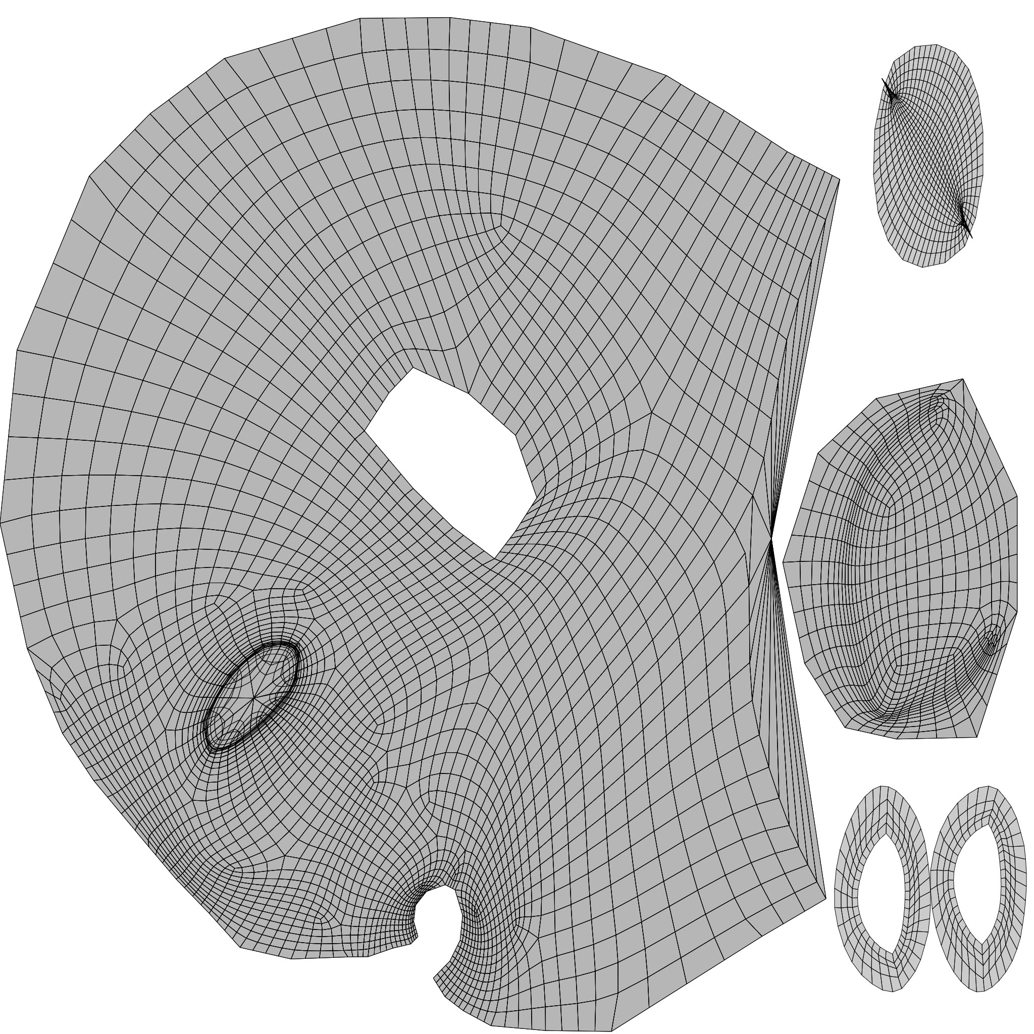 Necklace: The pendant as well as the ribbons on the back of the Kelpie are UV'd together. The chains and harness ring connecting the two pieces are not unwrapped as they are already rudimentary shapes (toruses). They are simply applied metallic materials.