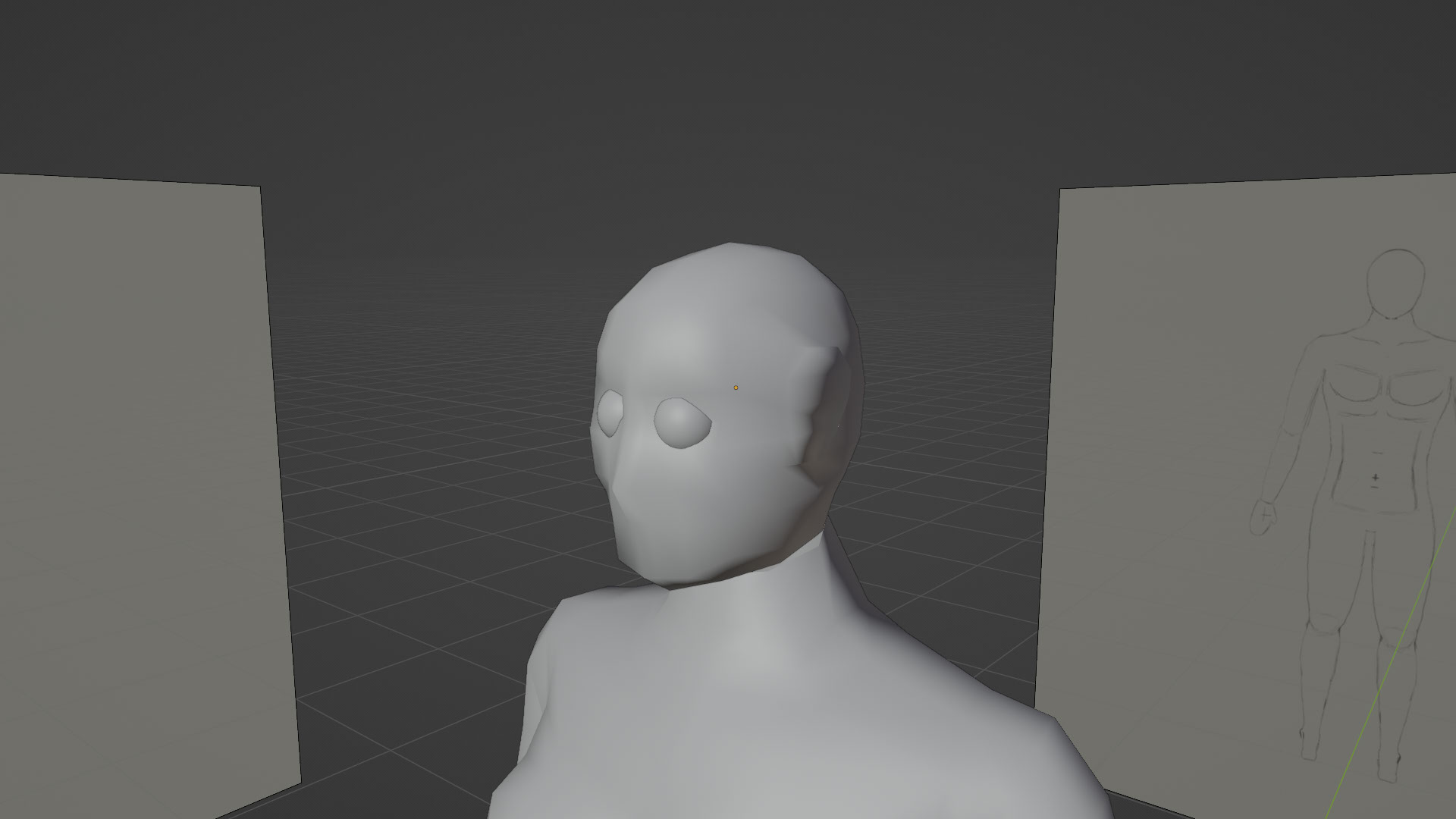 A whole redesign of my head was needed, and so I switched up my modelling methods. Generally I would take a subdivided cube and shape it into a face, but for the topological needs of this project, I instead opted to begin from a plane. Form here I extruded shapes like the nose and eyes of the model. Using real-life references, I was able to recognise certain issues with my sketch like the ear placement. Ultimately I was satisfied with the final head and proceeded to scultping.