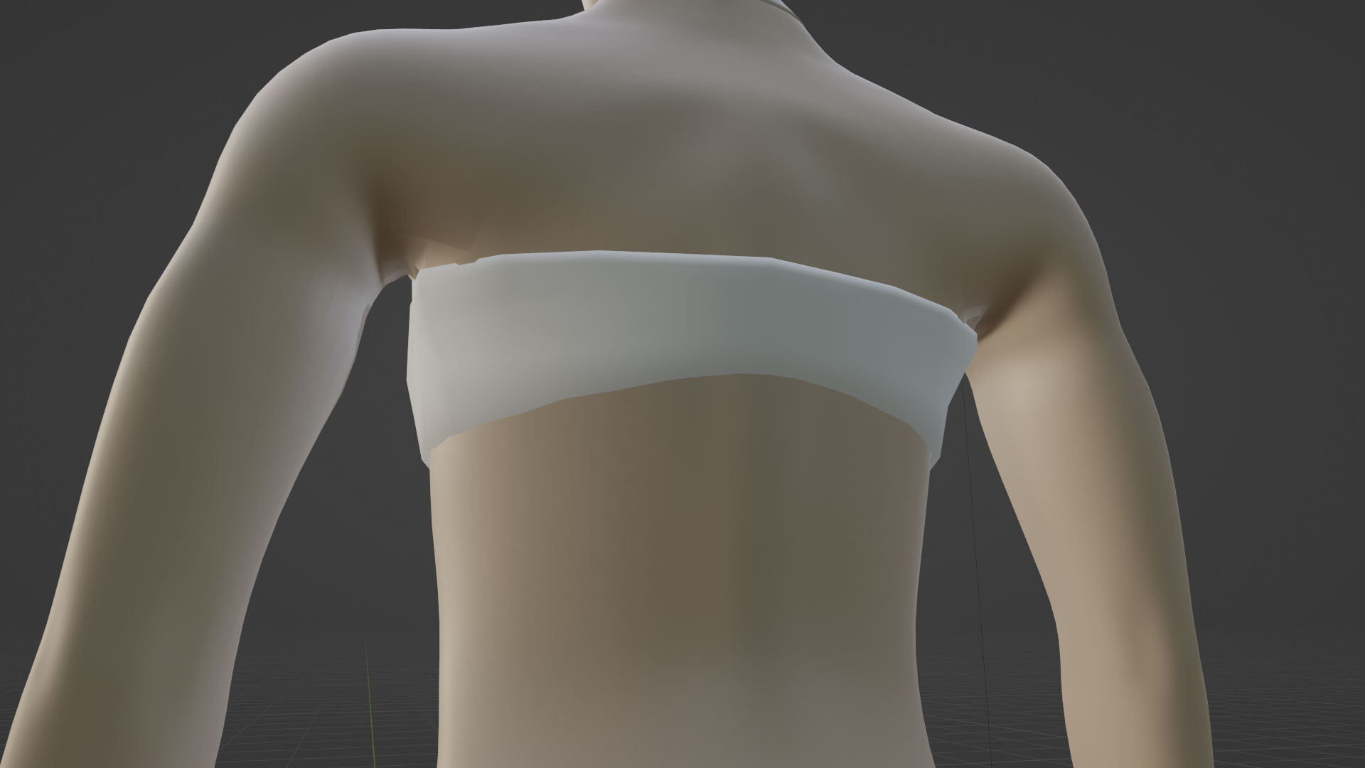 Also worked on was the kelpie's bra. When working on objects that wrap around another mesh, I do one final step where I extrude an extra face inside the body. This helps hide any edges of the cloth, and makes it look thicker.