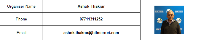 • Entry Fees payable by BACs on entering the teams. For BACs payment details please email ashok.thakrar@btinternet.com